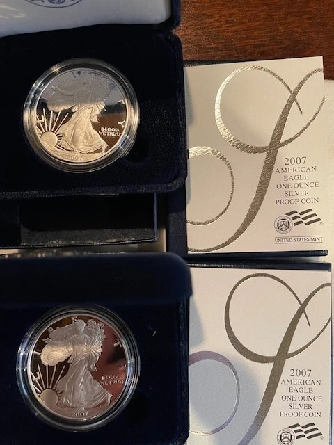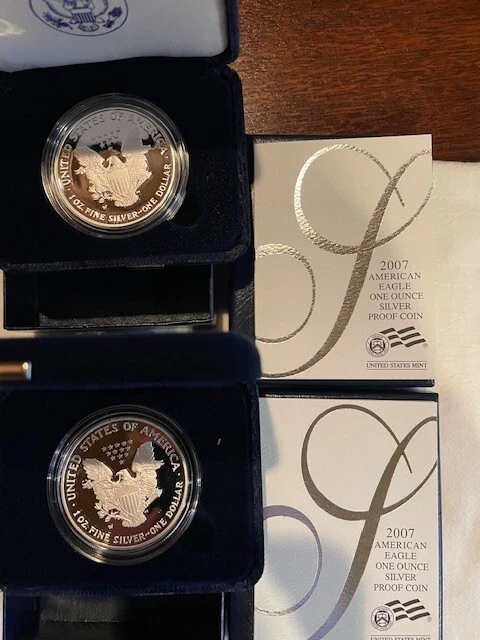 Home2007-W Proof American Silver Eagle Dollar $1 Box & COA US Mint Bullion OGP x 2