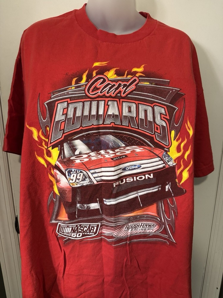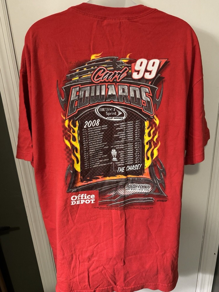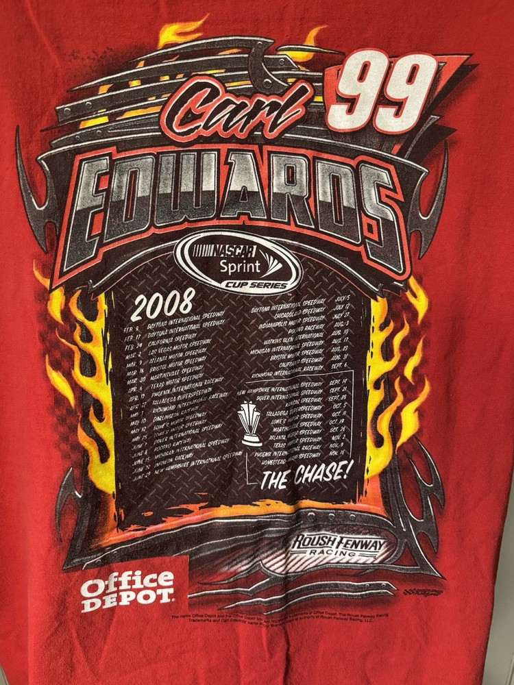 2008 Carl Edwards NASCAR Sprint Cup Series Shirt - Size XL - AAA Brand - Gently Used Rev up your wardrobe with this vintage 2008 Carl Edwards NASCAR T-shirt! This officially licensed shirt is printed on a AAA brand shirt and is a must-have for any NASCAR fan or vintage racing collector. **Details:** • Size: XL • Brand: AAA • Condition: Gently used (no rips, stains, or holes) • Front Graphic: Carl Edwards' name and signature car • Back Graphic: Full 2008 Sprint Cup Series race schedule Whether you're a die-hard Carl Edwards supporter or just love classic NASCAR gear, this tee is a piece of racing history. Great for race days, car shows, or everyday wear with retro flair. Ships fast and packaged with care. Don’t miss your shot to own a piece of 2000s NASCAR nostalgia!
