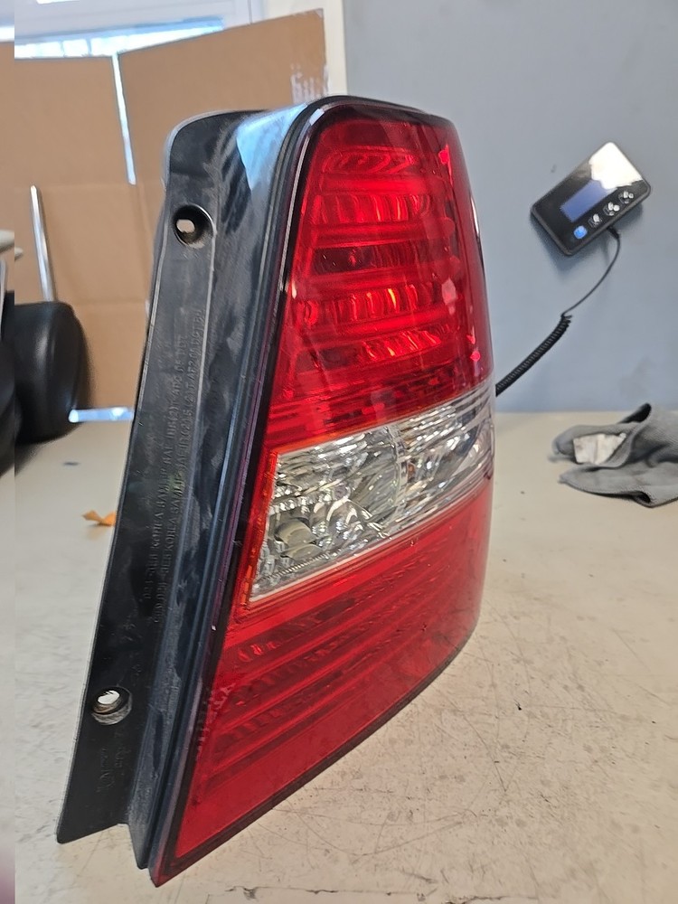 Used genuine OEM rear brake tail light for a 2007-2009 Kia Sorento, specifically designed for the passenger side. This tail light is manufactured by Kia and is made to fit securely in the rear right position of the vehicle. It provides proper illumination and signaling function for safe driving, ensuring visibility and compliance with traffic regulations. This factory part is a reliable replacement for a damaged or malfunctioning tail light on a Kia Sorento from the specified years.