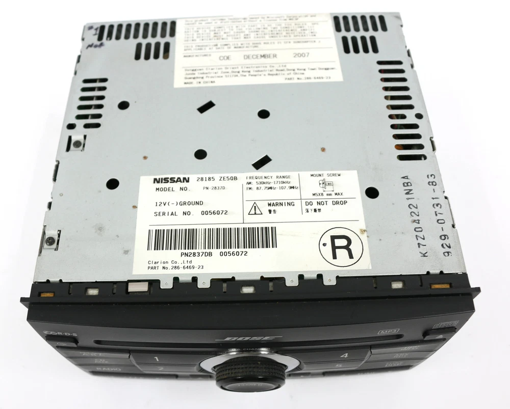 Largest Inventory of Factory Car Audio in the USA! 2008 Nissan Maxima Receiver AM FM 6 Disc CD Player w Aux 28185ZE50B Ebay1 -- Aux and Bluetooth -- 2008 -- Nissan Maxima AM FM Radio 6 Disc CD player w Auxiliary Input Part Number: 28185ZE50B Model Number: PN-2837D - No Code Required - Free Shipping to All 50 States! 90 Day Warranty! Free, Live Technical Support! ---------------------------- This listing is for a Nissan Maxima AM FM radio 6 Disc CD player w Auxiliary Input. T his radio has been professionally remanufactured, cleaned, and serviced as needed and thoroughly checked. The radio's appearance is great, as pictured, and is in 100% working order. Blemishes: Minor scuff mark on the seek button and thin scratches on the bottom part of the face. REPLACEMENT ONLY This radio is being sold as a REPLACEMENT ONLY! The part number is 28185ZE50B . If you do not have this exact part number currently in your vehicle, it will likely NOT WORK. If you are unsure of your part number, give us a call with your VIN and we should be able to provide you with the correct part number. They may look the same and have the same plugs but data streams may be different, not allowing them to code. For example, external amps are used in some cars and will not allow interchange, etc. We offer many models with modifications such as Bluetooth and Aux Input. If you're interested in these features, don't hesitate to get in touch! As you can see from our feedback, we package carefully and ship promptly via FedEx Insured. The radio you receive will be as pictured and described. Please feel free to give us a call with any questions or concerns. Thanks for your purchase! ---------------------------- FOR APPLICATION ASSISTANCE OR TECHNICAL SUPPORT, CONTACT US 9a - 6p EST, M-F ---------------------------- My family has been in the car radio business virtually from the beginning. My grandfather started the business back in the early 1930's. I have been involved since the 1950's with factory training from Ford, GM, and Chrysler. I started buying and selling items on eBay back in the late 1990's and have enjoyed the experience so much I decided to move the radio business into it as well. I was amazed after some searches at the pricing and quality I was seeing of the factory car radios on eBay.Lots of junkyards with huge amounts of negative feedback or radio specialists with crazy-high pricing. We offer quality,clean, factory radios at a low price. Some of our radios are purchased on closeout from GM, Ford, Chrysler. We also buy in quantity, removed radios from car dealers all over the country. You will not be buying 2 or 3 water damaged radios to get one good one (read some of the negative feedback the junkyards have from some very frustrated buyers).Give us a shot! Buy smart the first time. Life is short! Welcome to our eBay store! To make your purchase as simple and easy as possible, please refer to the store policies listed below. CHECKOUT Click Buy It Now at the top of this listing to immediately proceed with the checkout and payment process. PAYMENT We accept the following forms of payment. PayPal Credit Card Phone Payment SHIPPING Free Shipping to all 50 states! Radios will generally be sent via UPS to the lower 48. Some smaller items and radios going to AK or HI will be sent via USPS Priority or First Class Mail. International purchases are sent First Class International when possible and First Class Priority or UPS International otherwise. Most items are shipped within 1-3 days of processing but there are sometimes short delays due to final testing or build procedures. Please contact if your purchase is time sensitive. CONTACT If you have any questions or concerns before or after purchase, please do not hesitate to contact us M-F 9a to 6p Est. All our products have a 90 day warranty with free live tech support!