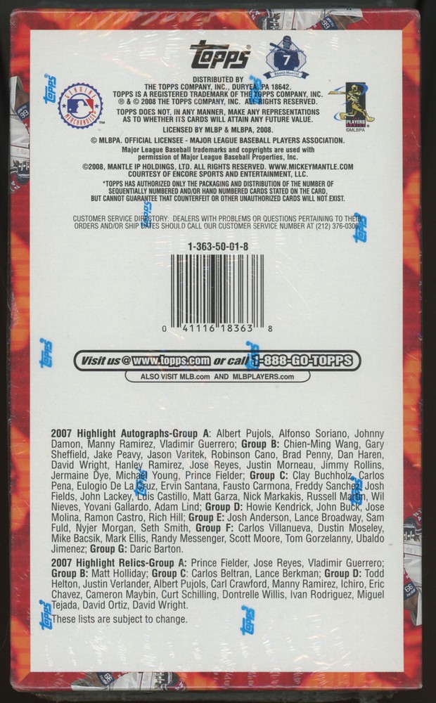 Home2008 Topps Series 1 Baseball Hobby Box Factory Sealed