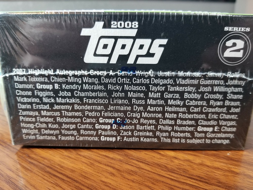 Series Two Checklist (does not inlcude Target, K-Mart or Walmart special cards) 331 Dave Roberts 332 Grady Sizemore / Jhonny Peralta CC 333 Jayson Nix (RC) 334 Oliver Perez 335 Eric Byrnes 336 Jhonny Peralta 337 Livan Hernandez 338 Matt Diaz 339 Troy Percival 340 David Wright 341 Daniel Cabrera 342 Matt Belisle 343 Kason Gabbard 344 Mike Rabelo 345 Carl Crawford 346 Adam Everett 347 Chris Capuano 348 Craig Monroe 349 Mike Mussina 350 Mark Teixeira 351 Bobby Crosby 352 Miguel Batista 353 Brendan Ryan 354 Edwin Jackson 355 Brian Roberts 356 Manny Corpas 357 Jeremy Accardo 358 John Patterson 359 Evan Meek RC 360 David Ortiz 361 Wesley Wright RC 362 Fernando Hernandez RC 363 Brian Barton RC 364 Al Reyes 365 Derrek Lee 366 Jeff Weaver 367 Khalil Greene 368 Michael Bourn 369 Luis Castillo 370 Adam Dunn 371 Rickie Weeks 372 Matt Kemp 373 Casey Kotchman 374 Jason Jennings 375 Fausto Carmona 376 Willy Taveras 377 Jake Westbrook 378 Ozzie Guillen 379 Hideki Okajima 380 Grady Sizemore 381 Jeff Francoeur 382 Micah Owings 383 Jered Weaver 384 Carlos Quentin 385 Troy Tulowitzki 386 Julio Lugo 387 Sean Marshall 388 Jorge Cantu 389 Callix Crabbe (RC) 390 Troy Glaus 391 Nick Markakis 392 Joey Gathright 393 Michael Cuddyer 394 Mark Ellis 395 Lance Berkman 396 Randy Johnson 397 Brian Wilson 398 Kenji Johjima 399 Jarrod Saltalamacchia 400 Matt Holliday 401 Scott Hairston 402 Taylor Buchholz 403 Nate Robertson 404 Cecil Cooper 405 Travis Hafner 406 Takashi Saito 407 Johnny Damon 408 Edinson Volquez 409 Jason Giambi 410 Alex Gordon 411 Jason Kubel 412 Joel Zumaya 413 Wandy Rodriguez 414 Andrew Miller 415 Derek Lowe 416 Elijah Dukes 417 Brian Bass (RC) 418 Dioner Navarro 419 Bengie Molina 420 Nick Swisher 421 Brandon Backe 422 Erick Aybar 423 Mike Scioscia MGR 424 Aaron Harang 425 Hanley Ramirez 426 Franklin Gutierrez 427 Carlos Guillen 428 Jair Jurrjens 429 Billy Butler 430 Ryan Braun 431 Delwyn Young 432 Jason Kendall 433 Carlos Silva 434 Ron Gardenhire MGR 435 Torii Hunter 436 Joe Blanton 437 Brandon Wood 438 Jay Payton 439 Josh Hamilton 440 Pedro Martinez 441 Miguel Olivo 442 Luis Gonzalez 443 Greg Dobbs 444 Jack Wilson 445 Hideki Matsui 446 Randor Bierd RC 447 Chipper Jones / Mark Teixeira CC 448 Cameron Maybin 449 Braden Looper 450 Prince Fielder 451 Brian Giles 452 Kevin Slowey 453 Josh Fogg 454 Mike Hampton 455 Derek Jeter 456 Chone Figgins 457 Josh Fields 458 Brad Hawpe 459 Mike Sweeney 460 Chase Utley 461 Jacoby Ellsbury 462 Freddy Sanchez 463 John McLaren 464 Rocco Baldelli 465 Huston Street 466 Miguel Cabrera / Ivan Rodriguez CC 467 Nick Blackburn RC 468 Gregor Blanco (RC) 469 Brian Bocock RC 470 Tom Gorzelanny 471 Brian Schneider 472 Shaun Marcum 473 Joe Maddon 474 Yuniesky Betancourt 475 Adrian Gonzalez 476 Johnny Cueto RC 477 Ben Broussard 478 Geovany Soto 479 Bobby Abreu 480 Matt Cain 481 Manny Parra 482 Kazuo Fukumori RC 483 Mike Jacobs 484 Todd Jones 485 J.J. Putz 486 Javier Vazquez 487 Corey Patterson 488 Mike Gonzalez 489 Joakim Soria 490 Albert Pujols 491 Cliff Floyd 492 Harvey Garcia (RC) 493 Steve Holm RC 494 Paul Maholm 495 James Shields 496 Brad Lidge 497 Cla Meredith 498 Matt Chico 499 Milton Bradley 500 Chipper Jones 501 Elliot Johnson (RC) 502 Alex Cora 503 Jeremy Bonderman 504 Conor Jackson 505 B.J. Upton 506 Jay Gibbons 507 Mark DeRosa 508 John Danks 509 Alex Gonzalez 510 Justin Verlander 511 Jeff Francis 512 Placido Polanco 513 Rick VandenHurk 514 Tony Pena 515 A.J. Burnett 516 Jason Schmidt 517 Bill Hall 518 Ian Stewart 519 Travis Buck 520 Vernon Wells 521 Jayson Werth 522 Nate McLouth 523 Noah Lowry 524 Raul Ibanez 525 Gary Matthews, Jr. 526 Juan Encarnacion 527 Marlon Byrd 528 Paul Lo Duca 529 Masahide Kobayashi RC 530 Ryan Zimmerman 531 Hiroki Kuroda RC 532 Tim Lahey RC 533 Kyle McClellan RC 534 Matt Tupman RC 535 Francisco Rodriguez 536 Albert Pujols / Prince Fielder CC 537 Scott Moore 538 Alex Romero (RC) 539 Clete Thomas RC 540 John Smoltz 541 Adam Jones 542 Adam Kennedy 543 Carlos Lee 544 Chad Gaudin 545 Chris Young 546 Francisco Liriano 547 Fred Lewis 548 Garrett Olson 549 Gregg Zaun 550 Curt Schilling 551 Erick Threets (RC) 552 J.D. Drew 553 Jo-Jo Reyes 554 Joe Borowski 555 Josh Beckett 556 John Gibbons 557 John McDonald 558 John Russell 559 Jonny Gomes 560 Aramis Ramirez 561 Matt Tolbert RC 562 Ronnie Belliard 563 Ramon Troncoso RC 564 Frank Catalanotto 565 A.J. Pierzynski 566 Kevin Millwood 567 David Eckstein 568 Jose Guillen 569 Brad Hennessey 570 Homer Bailey 571 Eric Gagne 572 Adam Eaton 573 Tom Gordon 574 Scott Baker 575 Ty Wigginton 576 Dave Bush 577 John Buck 578 Ricky Nolasco 579 Jesse Litsch 580 Ken Griffey, Jr. 581 Kazuo Matsui 582 Dusty Baker 583 Nick Punto 584 Ryan Theriot 585 Brian Bannister 586 Coco Crisp 587 Chris Snyder 588 Tony Gwynn 589 Dave Trembley 590 Mariano Rivera 591 Rico Washington (RC) 592 Matt Morris 593 Randy Wells RC 594 Mike Morse 595 Francisco Cordero 596 Joba Chamberlain 597 Kyle Davies 598 Bruce Bochy 599 Austin Kearns 600 Tom Glavine 601 Felipe Paulino RC 602 Lyle Overbay / Vernon Wells CC 603 Blake DeWitt (RC) 604 Wily Mo Pena 605 Andre Ethier 606 Jason Bergmann 607 Ryan Spilborghs 608 Brian Burres 609 Ted Lilly 610 Carlos Beltran 611 Garret Anderson 612 Kelly Johnson 613 Melvin Mora 614 Rich Hill 615 Pat Burrell 616 Jon Garland 617 Asdrubal Cabrera 618 Pat Neshek 619 Sergio Mitre 620 Gary Sheffield 621 Denard Span 622 Jorge De La Rosa 623 Trey Hillman MGR 624 Joe Torre MGR 625 Greg Maddux 626 Mike Redmond 627 Mike Pelfrey 628 Andy Pettitte 629 Eric Chavez 630 Chris Carpenter 631 Joe Girardi MGR 632 Charlie Manuel MGR 633 Adam LaRoche 634 Kenny Rogers 635 Michael Young 636 Rafael Betancourt 637 Jose Castillo 638 Juan Pierre 639 Juan Uribe 640 Carlos Pena 641 Marcus Thames 642 Mark Kotsay 643 Matt Murton 644 Reggie Willits 645 Andy Marte 646 Rajai Davis 647 Randy Winn 648 Ryan Freel 649 Joe Crede 650 Frank Thomas 651 Martin Prado 652 Rod Barajas 653 Endy Chavez 654 Willy Aybar 655 Aaron Rowand 656 Darin Erstad 657 Jeff Keppinger 658 Ke