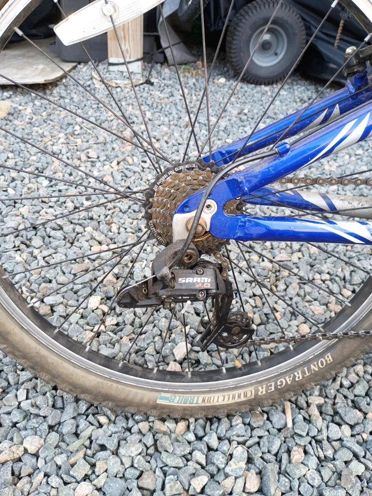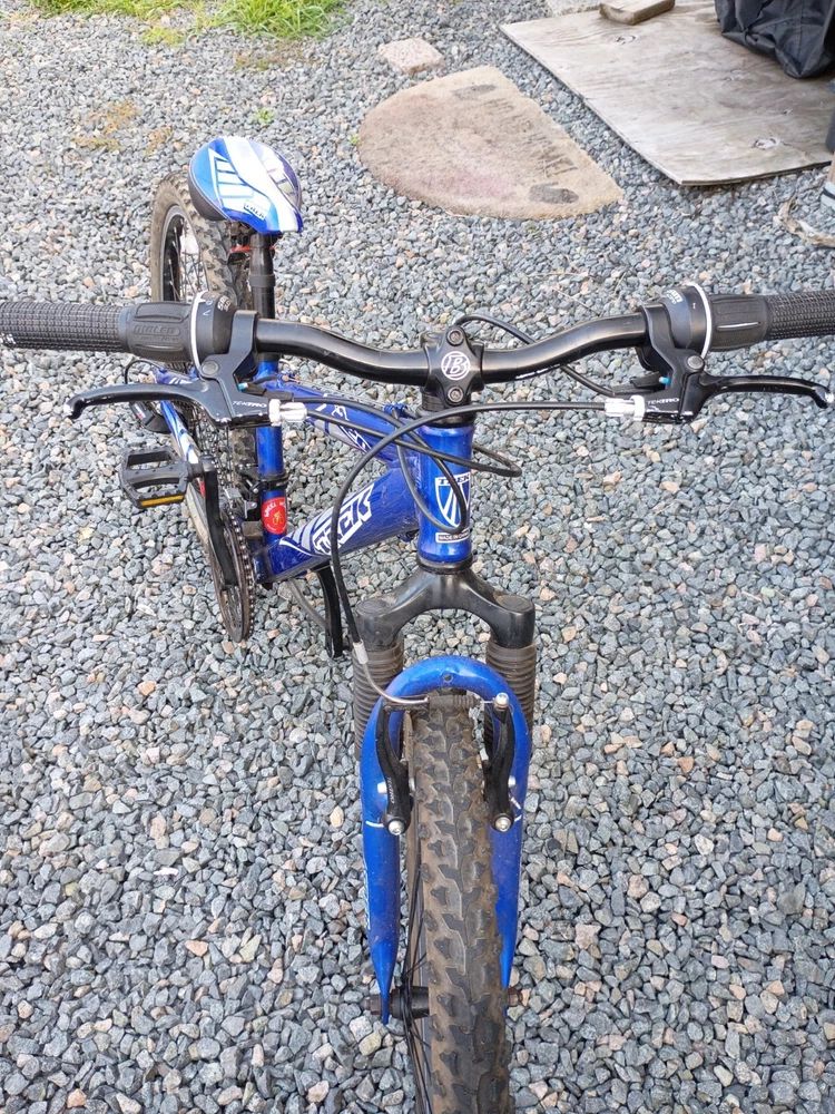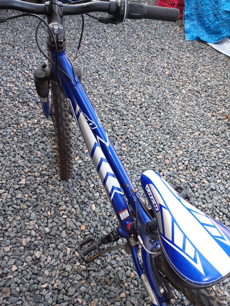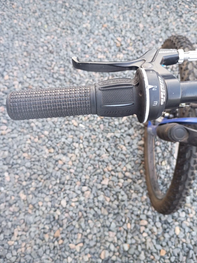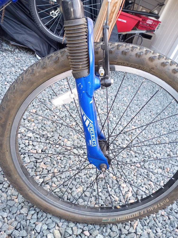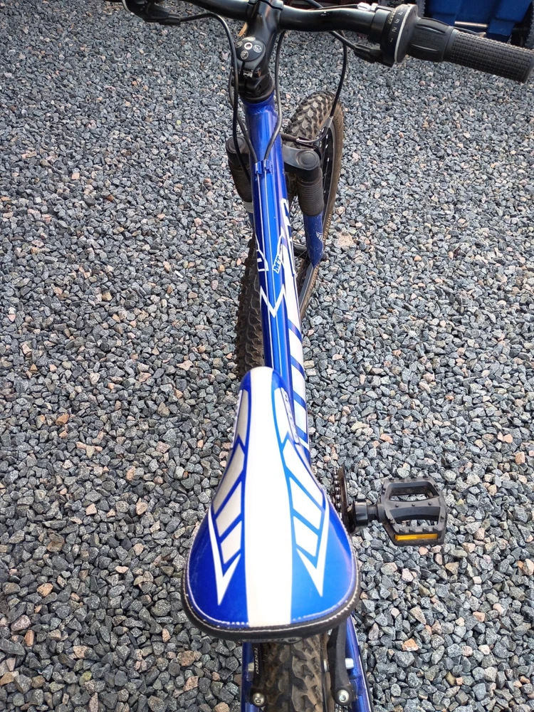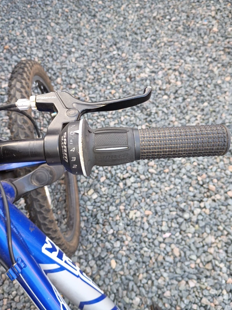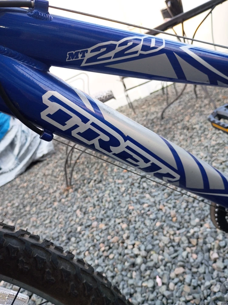 The 2008 Trek MT220 Youth Mountain Bike is a high-quality, durable bike designed specifically for young riders. With a 12" aluminum frame and front suspension, it provides a smooth and comfortable ride on various terrains. The 24" wheels and 21-speed grip shifter make it easy to tackle trails and enjoy the outdoors. This blue bike is lightweight, easy to maneuver, and features a step-through frame and adjustable seat for added convenience. With V-brake technology and derailleur gears, this Trek mountain bike offers a reliable and safe riding experience for children.