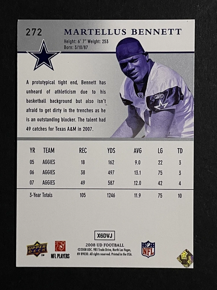 2008 Upper Deck Martellus Bennett Star Rookie Card - Dallas Cowboys / Texas A&M