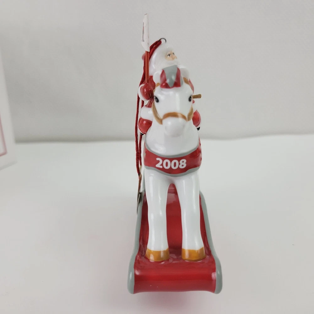 Occasion: Christmas Number of Items: 1 Subject: Rocking Horse Theme: Universities Type: Ornament Color: Red Character: SANTA CLAUS Set Includes: Ornament Shape: Santa Claus Year Manufactured: 2008 Brand: Danbury Mint Collection: Santa