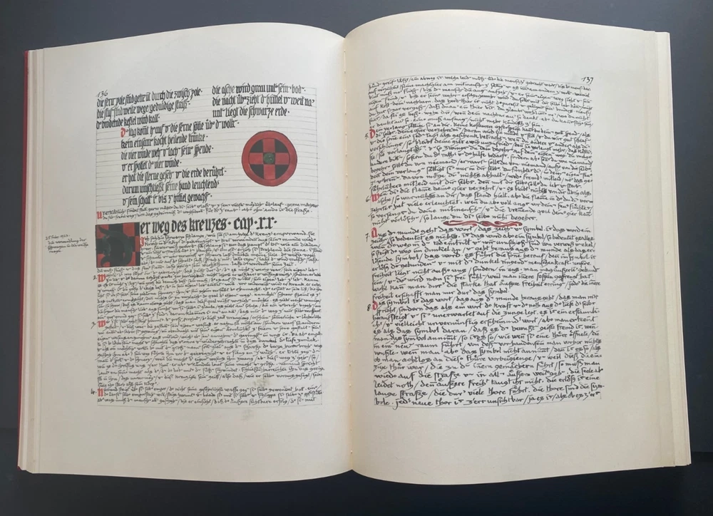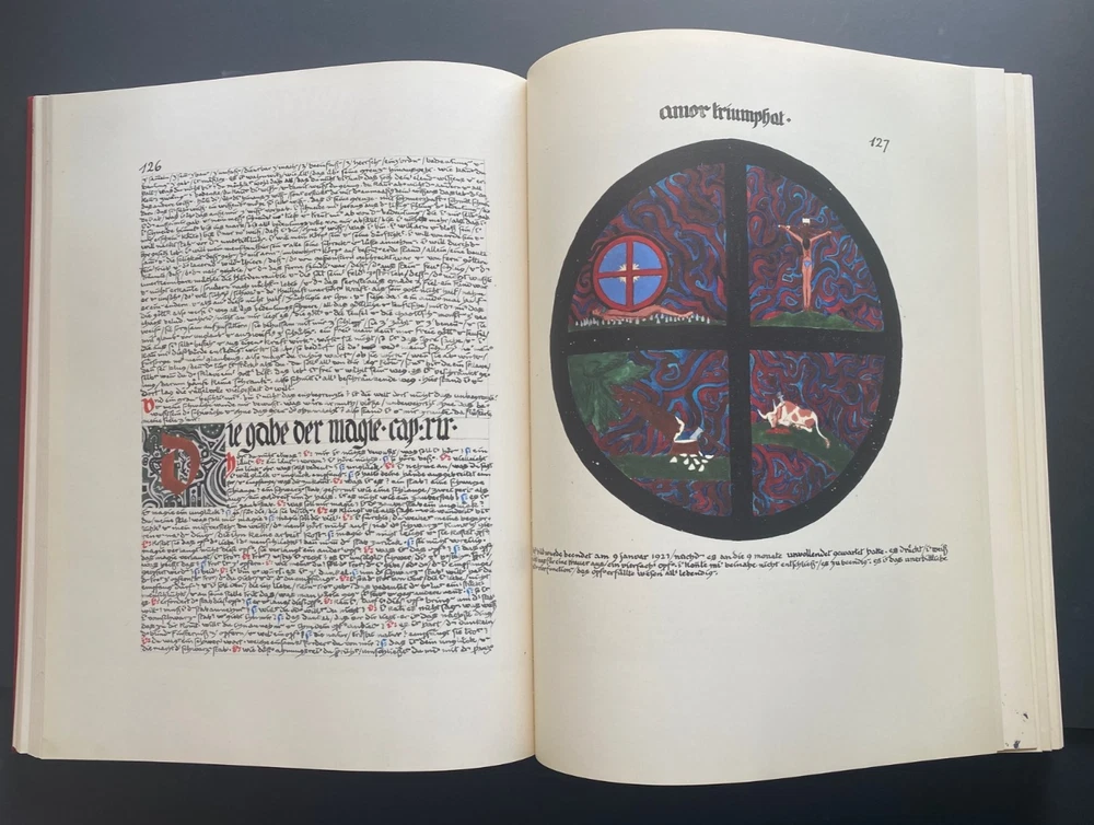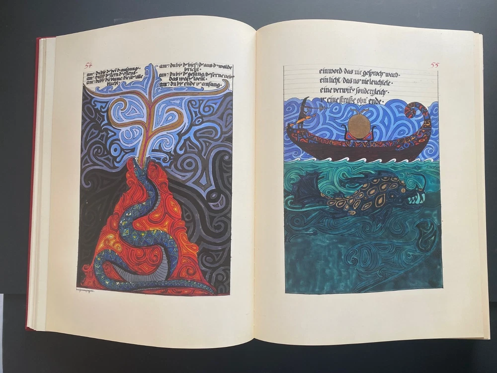 Express Shipping Worldwide is Free The Red Book By Carl Gustav Jung Paintings by Carl Gustav Jung Edited by Sonu Shamdasani Preface by Ulrich Hoerni Translated by Mark Kyburz, John Peck, and Sonu Shamdasani Published by W. W. Norton & Company, 2009 First Edition, with the dustjacket In Like New condition “The Red Book” (original title Liber Novus, Latin for “New Book”) is one of the most unusual and important works in the history of psychology. It is not a conventional psychology book, but rather a personal, visionary manuscript in which Jung documented an intense period of inner exploration between 1913 and about 1930. The book records Jung’s attempt to directly encounter and understand the unconscious mind through visions, dialogues with symbolic figures, and mythic imagery. Many of the central ideas later associated with analytical psychology—such as the collective unconscious, archetypes, individuation, and the shadow—emerged from the experiences described in this work. Historical Context In 1913, Jung underwent a profound psychological crisis. This occurred shortly after his break with Sigmund Freud, with whom he had previously been closely associated. During this time: Jung experienced vivid visions and dreams Europe was approaching World War I Jung feared he might be losing his sanity Rather than suppressing the experiences, Jung decided to systematically explore them. He recorded them in notebooks (called the Black Books) and later rewrote them in a large illuminated manuscript—the famous Red Book. The manuscript itself is handwritten calligraphy with elaborate paintings, resembling a medieval illuminated manuscript. Structure of the Book The Red Book has three major sections. 1. Liber Primus (First Book) Jung enters into the unconscious through deliberate imagination and encounters symbolic figures. Key themes: Descent into the unconscious Encountering inner figures Confronting the Shadow Psychological death and rebirth Jung describes conversations with figures such as: Elijah Salome A serpent Various symbolic beings These encounters represent psychological archetypes rather than literal persons. 2. Liber Secundus (Second Book) This is the largest and most philosophical section. Here Jung continues his inner dialogues and develops themes including: The conflict between rationality and the soul The danger of excessive intellectualism The necessity of accepting irrational elements of the psyche A major figure appears: Philemon Philemon becomes Jung’s inner teacher. Philemon represents: Wisdom Objective psyche The autonomy of the unconscious Jung later said Philemon convinced him that the unconscious has its own independent reality. 3. Scrutinies The final section contains Jung’s reflections on the experiences. Here he attempts to interpret: What the visions meant psychologically Their philosophical significance How they relate to myth, religion, and symbolism Central Psychological Concepts Although the Red Book is visionary and symbolic, it introduces ideas that later became foundational in Jungian psychology. 1. Encounter with the Unconscious Jung believed modern people were disconnected from their unconscious psyche. The Red Book demonstrates a method of reconnecting through: dreams fantasies symbolic imagination He called this process Active Imagination. 2. The Shadow The Shadow is the part of the psyche containing: rejected traits immoral impulses hidden aspects of personality Jung believed confronting the Shadow is necessary for psychological development. 3. Archetypes The visions in the book often take the form of universal symbolic characters. These are what Jung later called archetypes: Examples include: The Wise Old Man The Hero The Mother The Trickster Jung believed these arise from the collective unconscious, a deep layer shared by all humans. 4. Individuation The Red Book describes the process Jung later named individuation. This is the psychological process by which a person becomes a whole integrated individual. It involves: integrating unconscious aspects of the psyche balancing opposites developing the authentic self 5. Integration of Opposites A recurring theme is the tension between opposites: reason vs instinct good vs evil masculine vs feminine spirit vs matter Jung argued psychological health requires holding these opposites in balance rather than eliminating one side. Religious and Mythological Themes The Red Book draws heavily on: Christianity Gnosticism Greek mythology alchemy Eastern philosophy Jung believed myths and religions were symbolic expressions of psychological processes. The text often reads like a new myth of the modern psyche. In red cloth hardcovers, with titles in gilt to the spine, in 371 pages, with the dustjacket. The Dustjacket: There is no shelfwear. On one side of the inside of the dustjacket there has been a transference of colour from the cover. There is no foxing. There is no sunning to the spine. There are no tears, creases, or chips. The Book: There is no shelfwear. There is no foxing. There are no previous owners' names or inscriptions. All of the plates are fresh, bright and crisp - pristine. There are no missing, creased, loose, stained or damaged pages. It is complete and original. Measures 30cm x 39.5cm x 5cm and weighs a significant 4 kgs unpacked. EXPRESS SHIPPING AND HANDLING is Free Worldwide All items are securely and well packed. Thank you for viewing my item.