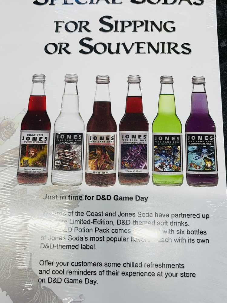 Original2009 dungeons and dragons Jones soda store display poster sheets 11” x 8 1/2”, I do not know how many are in this pack, but they are more than a few .