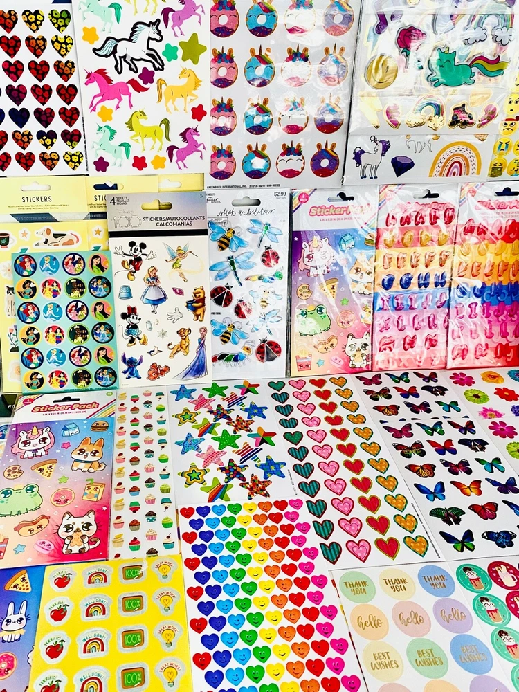 MEGA Mixed Sticker Lot | The Ultimate Sticker Collection | Qty. 2009+ Stickers Fun Assortment of Glossy, Glitter, Puffy, Scrapbook, Cartoons, Bubble, 3D, Pop Up, Foil, Metallic Stickers For Everyone! I have included a large variety of pictures of the assortment available. The pictures give you an idea of what you will be receiving. Please Note: You will not receive everything pictured. Please contact me with any special requests. This HUGE Variety of fun designs stickers can be used in parties, classroom, school and home, good for reward for students, potty training, adding inside a birthday card, game activities, entertaining toddlers, etc. Perfect Gifts for Kids & all Occasions: Can be given as a gift for kids, girls, boys, toddlers, teens, students, friends, and classmates, they will love it! Each package of stickers is a different style & theme with some lovely embellishments like rhinestones, ribbons, buttons and other 3D details that make these quality stickers look so unique!