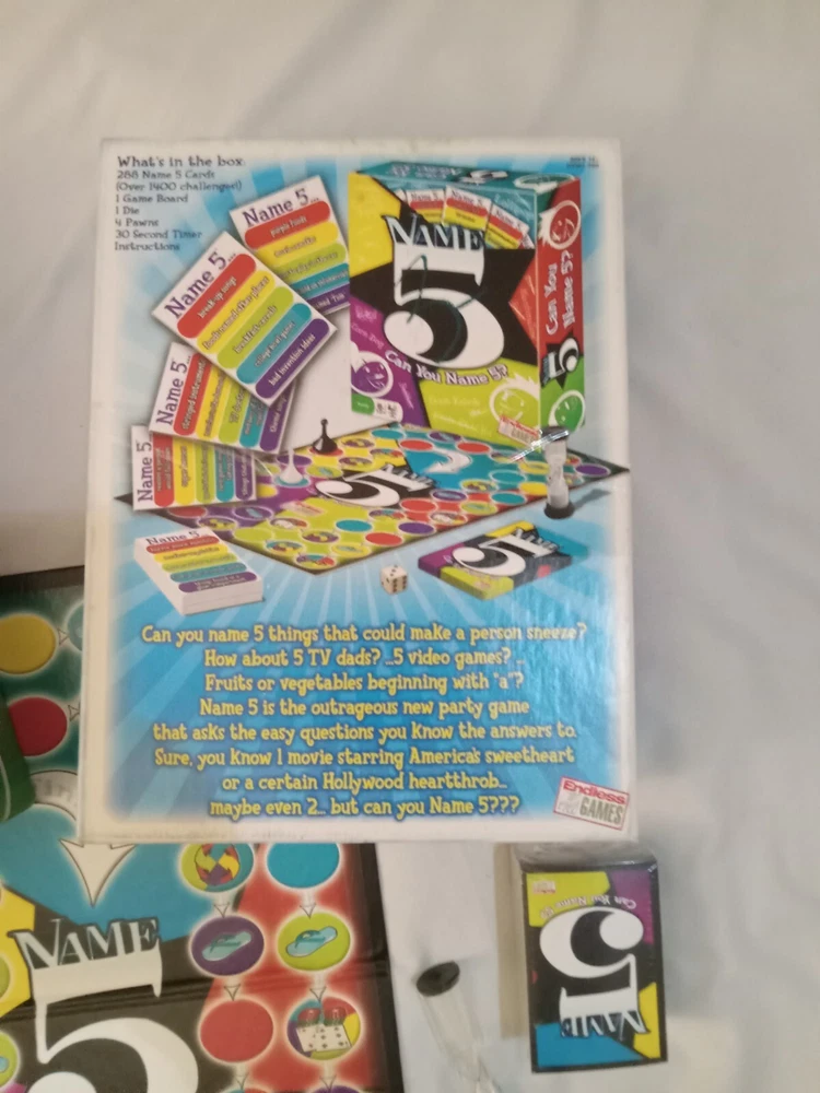 Get ready to put your knowledge to the test with the 2009 board game Can You Name 5? This timeless strategy game is perfect for players aged 12 and up, with a minimum of 2 players. The game features an hourglass timer and is safety tested, ensuring that it is suitable for all ages. With a unisex design, this Endless Games brand board game is a great addition to any game collection. The game type is cards, with a recommended age range of 12+. The game was manufactured in the United States in 2009 and is perfect for those who enjoy trivia and strategy games.