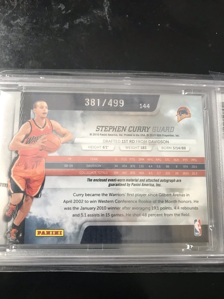 2009-10 Абсолютные сувениры Стивен Карри RC Джерси мяч / PSA 9 с 10 AUTO