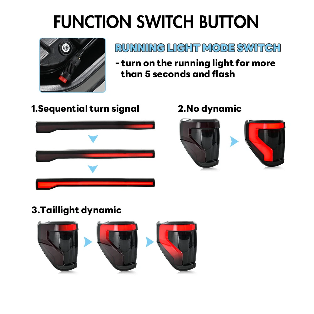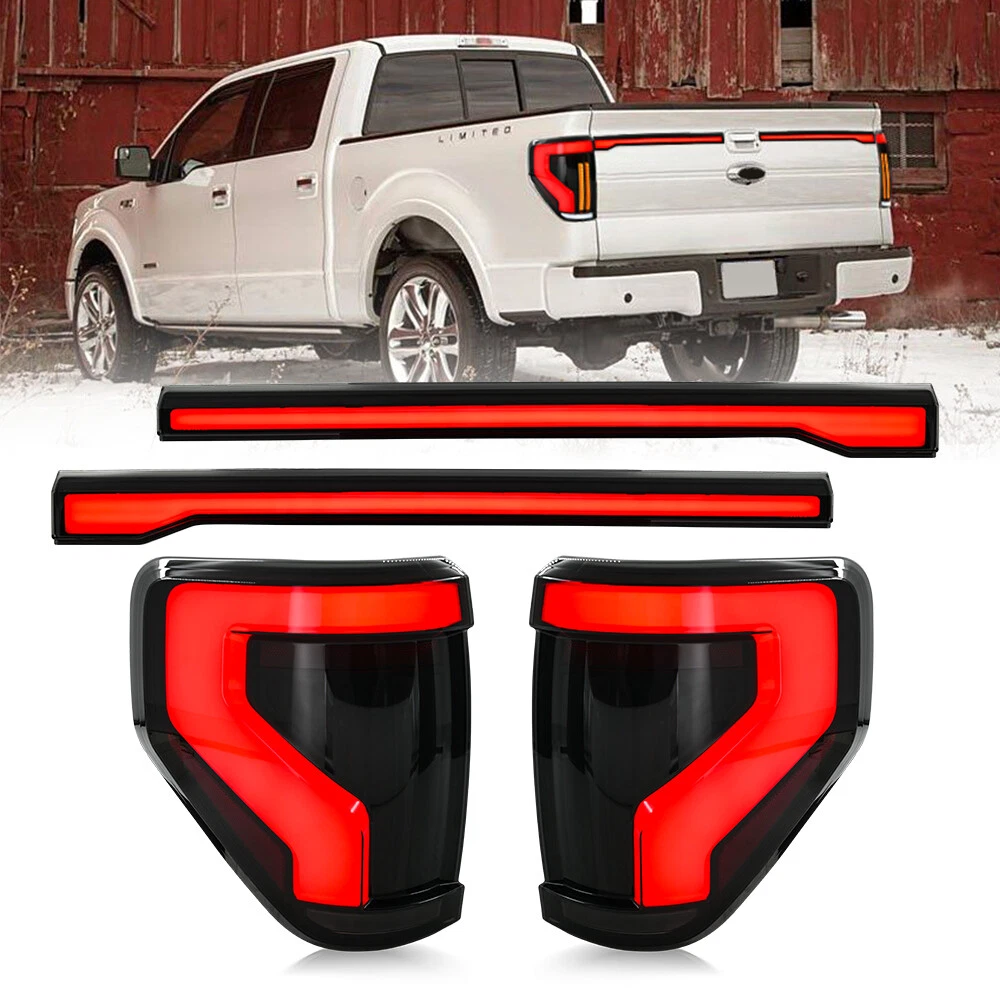 LED Tail Lights Center Trunk Light For 2009-2014 Ford F150 Rear Lamps Assembly Features: 1. One pair: Left + Right + Center Trunk tail lights 2. Tail Light Lens: Smoked Lens, Chrome Housing 3. Bulbs: All bulbs are built-in LED, no extra bulbs needed 4. Function: Rear Running Light (Red)+Turn Signal(Amber )+Reverse(White)+Brake (Red) lights 5. Easy installation: plug and play,same as original one to install 6.Assembly: all parts are included in the package,no need to buy extra bulbs or harness Fitment Fits For 2009-2014 Ford F150 ( Professional Installation is Highly Recommended ) Package include 1 Pair of Taillights (driver's side + passenger's side) Note 1. Please confirm whether this car-lamps can fit your car before buying, if you are not sure, please contact us and send us pictures of your original car light or plug. 2. Using your factory supplied connector/harness will avoid cutting or modifying any wires. Specification ·100% Brand New ·Professional Installation is Highly Recommended ·Welcome to send us message for more information Warranty: One-Year warranty after receiving After Sales Service Please contact us before returning the products, we will do our best to help you solve all the problem well with good service!!! Questions Any question will be replied within 24 hours except the weekend and holiday. We will serve for you all sincerity!