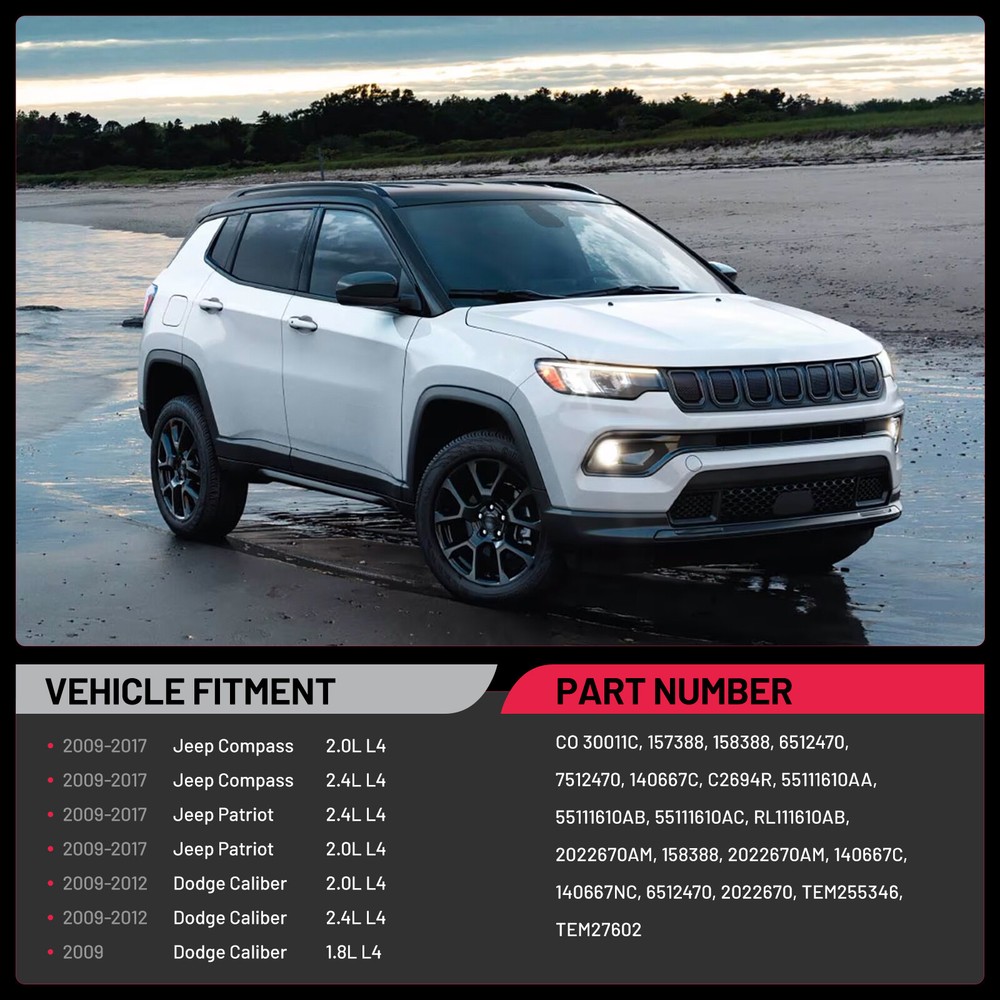 Specifications: Material: Aluminum Alloy Color: Silver Black Placement on Vehicle: Front Quantity: 1 Pulley Groove Quantity:6 Voltage: 12V Compressor Type: Belt Driven Fitment Type: Direct Replacement  Replace OEM Number: CO30011C,RL111610AB,55111610AA,55111610AB,158388,6512470 55111610AC,RL111610AC,140667C,2022670AM,20-22670-AM 157388,7512470,255346,276024,TEM255346,TEM276024,2022670  Fitment: For 2009-2009 Dodge Caliber 1.8L For 2009-2012 Dodge Caliber 2.0L For 2009-2012 Dodge Caliber 2.4L For 2009-2016 Jeep Compass 2.0L For 2009-2016 Jeep Compass 2.4L For 2009-2016 Jeep Patriot 2.0L For 2009-2016 Jeep Patriot 2.4L  Package includes: 1 x AC Compressor w/Clutch Specifications: Material: Aluminum Alloy Color: Silver Black Placement on Vehicle: Front Quantity: 1 Pulley Groove Quantity:6 Voltage: 12V Compressor Type: Belt Driven Fitment Type: Direct Replacement Replace OEM Number: CO30011C,RL111610AB,55111610AA,55111610AB,158388,6512470 55111610AC,RL111610AC,140667C,2022670AM,20-22670-AM 157388,7512470,255346,276024,TEM255346,TEM276024,2022670 Fitment: For 2009-2009 Dodge Caliber 1.8L For 2009-2012 Dodge Caliber 2.0L For 2009-2012 Dodge Caliber 2.4L For 2009-2016 Jeep Compass 2.0L For 2009-2016 Jeep Compass 2.4L For 2009-2016 Jeep Patriot 2.0L For 2009-2016 Jeep Patriot 2.4L Package includes: 1 x AC Compressor w/Clutch