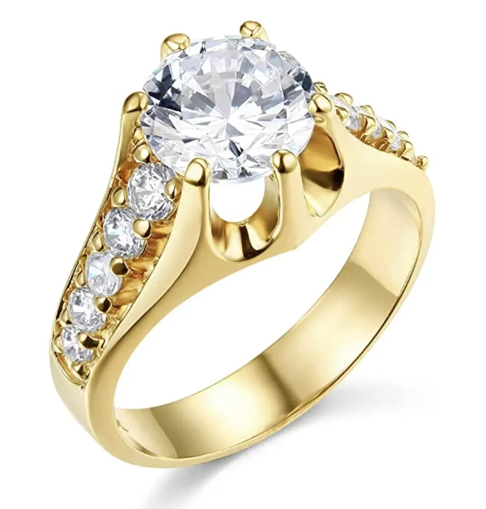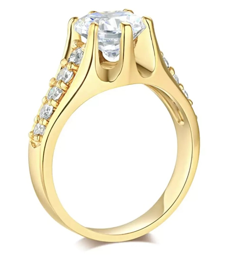 2.00CT Round Cut Natural Moissanite Engagement Ring in 14K Yellow Gold Plated