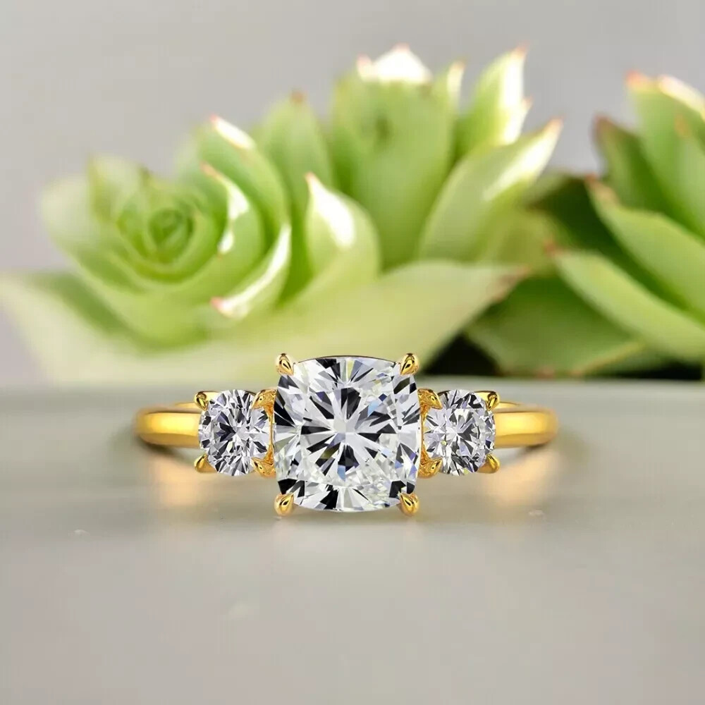 Elegance and brilliance come together in this 2.00Ct Cushion Cut Lab Created Diamond Solitaire Engagement Ring, exquisitely crafted for a luxurious statement. The ring features a dazzling cushion-cut diamond with a complementing lab-created stone, set in a prong setting that ensures security and durability. With a metal purity of 14k and a gold plating finish, this ring offers a classic look with a modern twist. The white diamonds boast a clarity grade of VVS1, ensuring a near-flawless appearance that will captivate any eye. The 14K Yellow Gold Plated band adds a touch of timeless beauty, making it an ideal choice for various special occasions. This ring is available in all sizes, and upon purchase, the buyer can provide their specific ring size for a tailored fit.