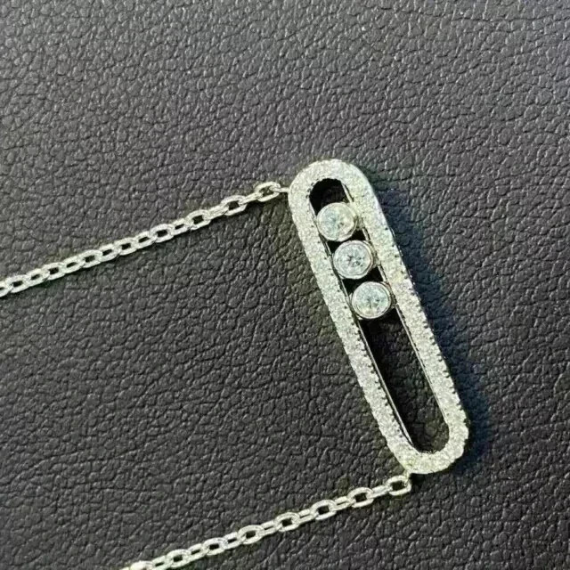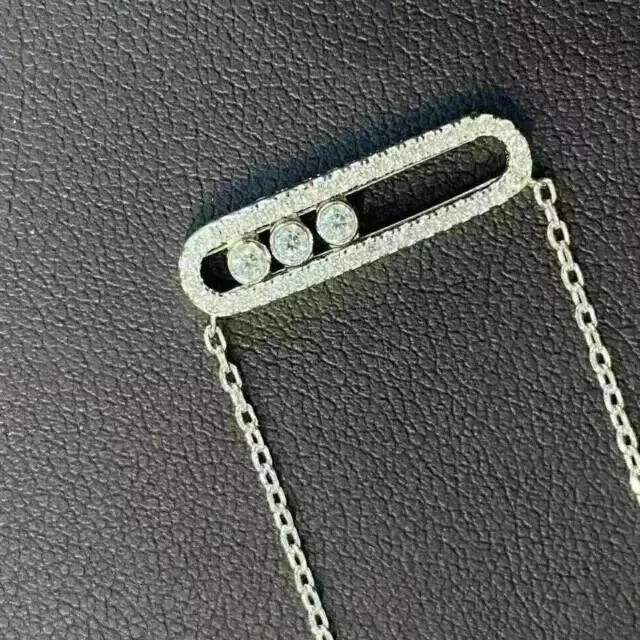 14K White Gold Pendant Necklace Round;pear Labcreated Diamond 3.3ct F/VS