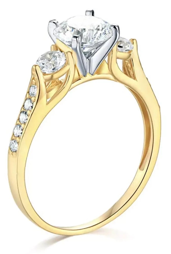 Elevate your special moments with this exquisite 2.00Ct Round Cut Natural Moissanite Women's Wedding Ring, beautifully set in 14k Yellow Gold Plated sterling silver. The dazzling white moissanite stone, boasting a round shape and excellent cut grade, sparkles with the brilliance of a 3.00CT total weight, ensuring a captivating display of light and color. Whether it's for an anniversary, birthday, or any other significant occasion, this ring is a timeless choice that promises to leave a lasting impression. Crafted with precision, the ring features a prong setting that securely holds the natural moissanite, promoting longevity and peace of mind. The metal purity of 14k adds a luxurious touch to this piece, while the option for personalization allows for a truly unique creation. Celebrate love and beauty with this elegant ring, designed to be a cherished token for a lifetime.