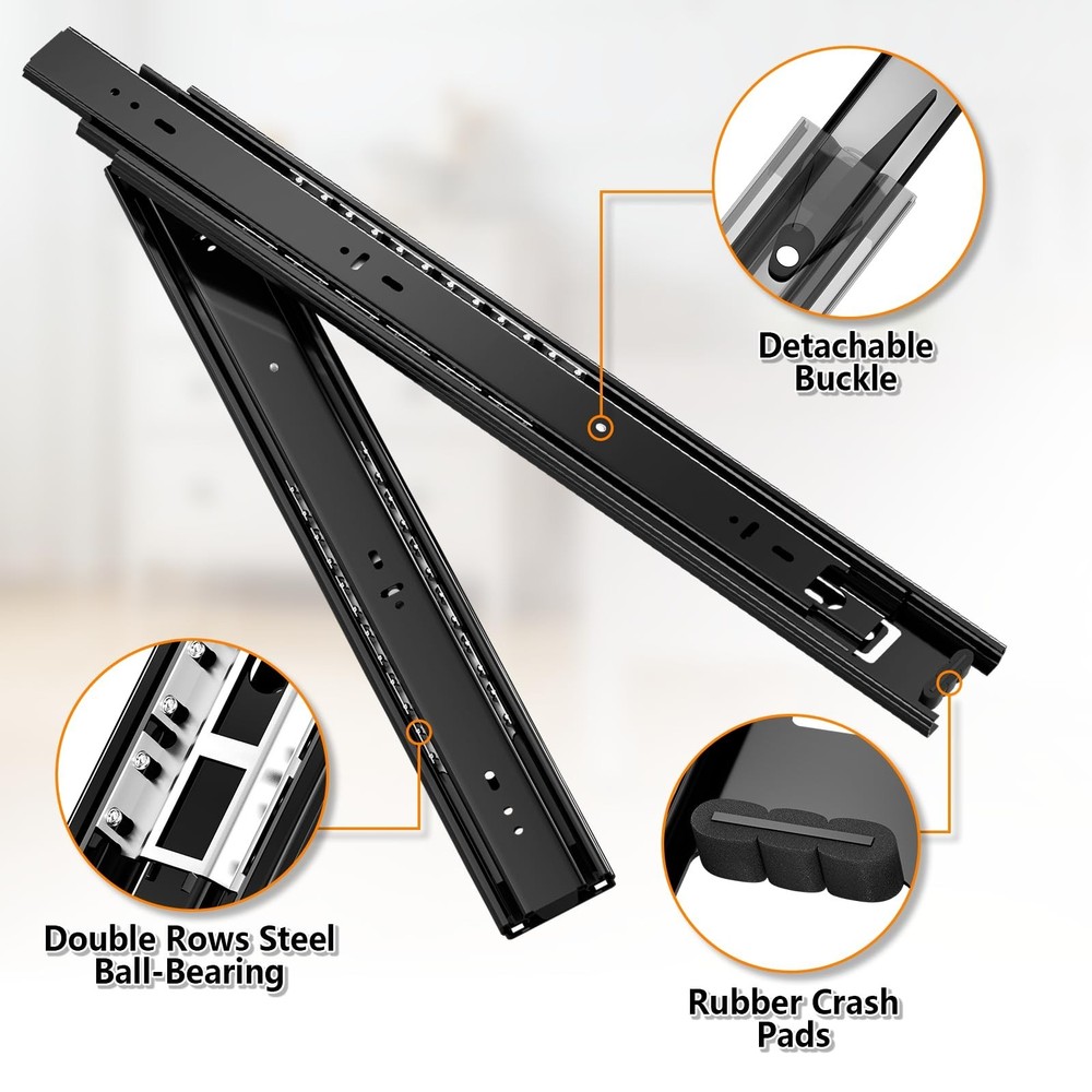 These slides are incredibly smooth and sturdy, handling heavy loads with ease. Installation was straightforward, and they glide perfectly every time. Highly recommend for anyone needing reliable drawer hardware!