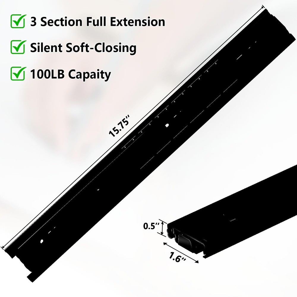 1 Pair 200Lb Heavy Duty Drawer Slides Full Extension 15.75IN Black Slide Track Rail Product Details Color: Black Brand: ANASTA Finish Type: Black Mounting Type: Side Mount Weight Limit: 200 Pounds Drawer Type: Side Mount, Ball Bearing Manufacturer: ANASTA UPC: 795847141978 Number of Items: 2 Part Number: AT001 Item Weight: 2.07 pounds Product Dimensions: 16.5 x 12.2 x 16.14 inches Country of Origin: China Item model number: AT001 Size: 15.75inch Finish: Black Maximum Weight Capacity: 200 Pounds Batteries Included?: No Batteries Required?: No Date First Available: April 16, 2025 Heavy Duty Drawer Slides 15.75Inch Full Extension Side Mount Ball Bearing Locking Rails Track Drawer Slides1 Pair 15.75 inch Locking Drawer Slides, 200lbs Load Capacity