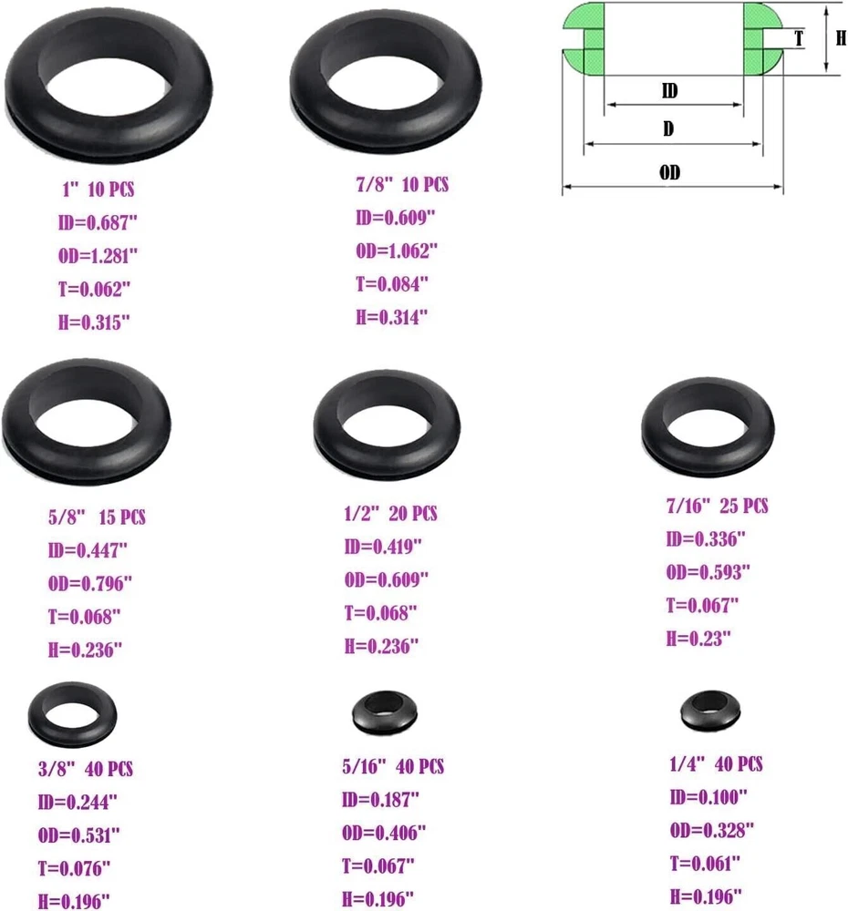 SAFE & SECURE SHOPPING 100% SATISFACTION GUARANTEED FAST SHIPPING You may also like 200PCS Rubber Grommet Firewall Hole Plug Electrical Wiring Gasket Assortment Kit 9.98 USD Free shipping 200Pcs Black Car Rubber Grommet Assortment Set Electrical Wire Gasket Kit Boxed Product Description Rubber seal rings set include:200 pieces of different sizes rubber grommets, 1"(10 pcs) , 7/ 8"(10 pcs), 5/ 8"(15 pcs),1/ 2" (20 pcs), 7/ 16 " (25 pcs), 1/ 4", 5/ 16", 3/ 8"(40 of each). Made of flexible rubber material, they are of good electric resistance capability. Corrosion resistance, high temperature resistance, durable and tear-resistant. Wide application,rubber o rings are for wiring repair, and can prevent metal-on-metal contact thus to protect wiring, Fit for automotive, cylinder, valve, pump, electrical appliance, chemical pipe, spray, water pipe, plumbing, hardware and piano repair. Easy to use,o rings are designed for easy installation and click snap affixing drill holes, metal panels would create a neat finished look on furniture and electric boxes Product Description: Rubber seal rings set: include 180 pieces of different sizes rubber grommets rubber grommets sizes: 7/ 8, 1 inch(10 of each) 5/ 8 inch(15 pieces) 1/ 2 inch (20 pieces) 7/ 16 inch (25 pieces) 1/ 4, 5/ 16, 3/ 8 inch (40 of each) Package Include: 200Pcs*Rubber Payment Shipping Returns Feedback Payment EBAY Managed Payment. But we only Accept your Ebay Address, please Make sure it's 100% right. Payment must be received in 5 business days of auction closing. Please leave note for your special request (e.g. Colors or Size) in when you pay the order. Any special request cannot be accepted after 24 hours of payment, because most of orders will be processed instantly and same day dispatched. Shipping 1. We only ship to the confirmed address provided by eBay. please make sure your ebay address is 100% matches the address you would like us to ship to. If not, please let us know before we sent you the package, or we will not be responsible for any loss. hope you could understand. 2.Except for holidays, orders are processed immediately and shipped within 1 business day, so we will no longer accept any changes to your order after it has shipped. Please understand! 3、Our package will be delivered to you within 1-5 days, please be patient! Returns 1.Note: For your best shopping experience in our store and saving your time. Please Do Not click "Return this item" except that you just don't need it any more. Because "return request" can't help you to solve the problem efficiently, it may takes a little longer time for u to get a reply due to we check with our "return request" every 2 days. that is the fastest way to solve any problem for you (We may respond a day later if you contact us at Saturday). You will receive helpful and practical solution through the communication between us. 2.Refunds given only if item DOA and cannot be replaced via PAYPAL . If so, Please reported within 5 days and return to us within 30 days from the delivery date for exchange or refund. 3.If you need return, please check twice to confirm the item not work and contact our customer service representative, let us know the detailed problem and send us some pictures for confirmation. Then get a unique address for return. Feedback 1.We will leave POSITIVE FEEDBACK after receiving the payment. Please contact us if you are not satisfied with the item after receive it. 2.If you are dissatisfied for any reason, please donot be quick to leave negative/neutral feedback. We work hard to make sure EVERY CUSTOMER 100% SATISFIED and resolve any problem for you and always leave positive feedback to all our customers. 3.Serious Buyer Only! Please place bid only if you agree with all the terms. Copyright © 2022 Tongtool