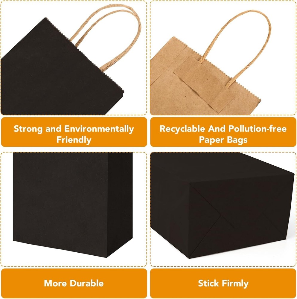 200Pcs Eco-Friendly Black Paper Gift Bags - 5.25x3.25x8.25'' Durability & Style ‹ › ‹ › ‹ › ‹ › ‹ › ‹ › ‹ › ‹ › ‹ › 200Pcs Eco-Friendly Black Paper Gift Bags Size: 5.25x3.25x8.25 inches Durability & Style Durable Quality: Crafted from robust 110gsm kraft paper, these gift bags are designed to withstand everyday use, ensuring your gifts are presented beautifully without compromising on sturdiness. Eco-Friendly: Experience the essence of sustainability with our reusable, recyclable, and biodegradable bags. Free from peculiar smells, they are a healthier, upscale alternative to plastic. Stability: The flat and stable bottom allows these bags to stand upright when filled, making it easier to present your gifts effortlessly. Versatile Applications: Perfect for a variety of occasions such as birthdays, holidays, baby showers, and retail use. Ideal for writing personalized messages for friends, family, or customers. Perfect for Any Event: These black paper bags with handles seamlessly transition from treat bags and goodie bags to elegant wedding gift bags and holiday shopping bags. DIY Creativity: Unleash your inner artist! These plain paper bags provide a canvas for your creativity—add your unique designs with drawing, coloring, or stamping. Why Choose Our Eco-Friendly Gift Bags? Elevate your gifting experience with our 200Pcs Eco-Friendly Black Paper Gift Bags. Not only do they provide durability and style, but they also embody a commitment to sustainability that resonates with modern consumers. Stand out from the crowd and make your special occasions more memorable with our versatile bags that cater to every need—from birthday celebrations to retail displays. Transform your gift-giving while caring for the planet—order your pack of eco-friendly gift bags today and begin your creative journey! Shipping Free & Fast Shipping - We offer free shipping to most of the USA with a normal delivery time of 3-7 days. However, due to the current situation, additional delivery time (up to 3 weeks) may be required for some items. Alternative Carriers - We may use alternative carriers (e.g. USPS, FedEx, UPS, etc.) to ensure your package arrives safely and on time. Due to the use of multiple carriers, we are unable to provide a tracking number automatically. Handling Time - Orders are processed and shipped within 1-2 business days of receiving cleared payment. Shipping Restrictions - Shipping to Alaska, Hawaii, Puerto Rico, Guam, and other US territories may incur shipping charges or delivery restrictions. Please contact us before ordering, or your order can be refunded/cancelled. State Restrictions - There may be restrictions based on your state of purchase. For example, certain items may not be shipped to California due to state regulations. Contact for Tracking Updates - If you require tracking updates or have any concerns about the delivery of your order, please feel free to contact us, and we will be happy to assist you. Return 30-Day Hassle-Free Returns - We want you to be completely satisfied with your purchase. If you are not, you can return the item within 30 days of receiving it for a full refund or exchange. Easy Return Process - To start a return, simply contact us and we will provide you with a prepaid return shipping label and detailed instructions. Restocking Fee - There are no restocking fees for returns. However, the buyer is responsible for return shipping costs if the return is not due to a seller's error. Refund Processing Time - Refunds will be processed within 5 business days of receiving the returned item in its condition. Payment We accept all major credit cards, PayPal, and Apple Pay for your convenience. Your payment information is secure and encrypted to ensure a safe and seamless transaction. Please complete your payment within 3 days of purchase to avoid any delays in shipping. Feedback Your feedback is extremely important to us. We strive to provide the best products and customer service possible. If you are satisfied with your purchase, please take a moment to leave us a positive review. If you have any concerns or issues with your order, please contact us before leaving negative feedback. We are committed to resolving any problems and ensuring your satisfaction. Contact Us If you have any questions or concerns, please feel free to out to our customer support team. You can contact us through the eBay messaging system. We are available Monday to Friday, 9:00 am to 5:00 pm EST, and we will do our best to respond to your inquiry within 24 hours. Buy it now and enjoy a pleasant shopping experience! Unit Quantity: 200 Material: Paper,kraft paper,110gsm paper Type: Gift Bag Size: Large Color: Black Occasion: Birthday Theme: Birthday Or Wedding Recipient: Friend Pattern: Solid Department: Adults Style: Contemporary Origin: California