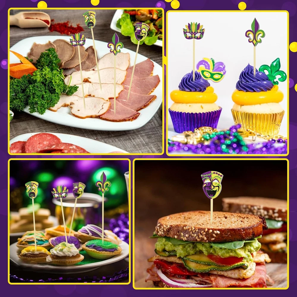 Store New Arrivals Add to Favorite View Feedback Contact Fast deliveries to the customer's home Quality customer service John Make the customers happy! 200Pcs Mardi Gras Cocktail Picks,Mardi Gras Cupcake Toppers 4.7 Inch Mardi Gras Fruit Toothpick Carnival Masquerade Decorative Toothpicks for Mardi Gras Decorations Themed Party Supplies Description MAKE YOUR PARTY ATTRACTIVE-The total number of these Mardi Gras Cocktail Picks is 200pcs, which is sufficient to satisfy your various needs.Let your appetizers and cocktail drinks be presented in a great attractive way MATERIAL-These Mardi Gras cupcake toppers are made of wood.the surface is smooth, and the heads at the end makes it easier to hold and gives you a comfortable feeling of use. they are long enough to not break easily and you can insert various foods more easily APPROPRIATE SIZE-Our Mardi Gras theme food appetizers toothpicks are about 12 cm/ 4.7 inch in length,proper in size and light in weight. Cocktail stick as a disposable item,they help reduce the time required to clean up after events or parties, or in restaurant kitchens ADD CHARMS FOR YOUR FOOD-These Mardi Gras toothpicks are not only play the role of decoration, but also can accommodate or penetrate all kinds of appetizers,snacks, fruits,barbecues,vegetables,fried cakes,desserts,sandwiches,cheese, sausages, meatballs,sandwiches,cupcakes,drinks, etc HOME PARTY SUPPLIES-These Carnival Masquerade Decorative Long Toothpicks are not only suitable for decorating cupcake, but also can used to decorate baking, muffin, desserts, cookies, donuts and appetizers to make your food looks delicious also make your guest feel the happy of your home party Our decorations pack is for the theme party decorations. Cocktail skewers decorations will add more party touch to your party and have a happy day with your guest and family. GREAT VALUE You will get 200PCS 4.7 inches party toothpicks in total, a sufficient quantity for your daily use or party supply. GREAT DECOR FOR FOOD cocktail sticks add style and class to your parties and events, which is charming decoration for your foods. EASY TO USE Sharp enough to easily pierce food and the ball on the Cocktail picks makes it easier for you to hold. Making your food prep faster. WIDELY APPLICATIONS Multipurpose cocktail sticks can be applied for appetizers, fruit, drinks, etc. It's a good helper on many important occasions, like cocktail parties, weddings, graduations, etc. Package includes: 200 x Cocktail Picks Warm notes: Please put them in clean, cool and dry places before using. If the bamboo skewers are not used up, please seal them for next use. Picks are meant for one-time use. Item Weight 6.7 ounces Item model number Cocktail Picks Country of Origin China Package Dimensions 11.3 x 6.1 x 2.36 inches ABOUT US We offer the best prices around on high quality products. Our E-store includes media such as books, movies, music and games while offering electronics, toys, sporting apparel, clothing, tools, general home, garden items and more. SHIPPING We are always working hard to ensure your package arrives as soon as possible. Please understand that some factors like weather, high postal traffic, and the performance of shipping companies are outside of our control. We offer free shipping to the lower 48 states and ship within 2 business days of payment, usually sooner. We do not accept P.O. Boxes. Please provide a physical address. For shipping outside of the continental USA, we only use eBay's Global Shipping Program. The item is shipped to KY and then sent to the rest of the world. International customers are responsible for all duties and taxes. Continue to 'check out' to calculate costs for shipping the item to your country. Messages regarding eBay's Global Shipping Program MUST be directed at eBay EXCLUSIVELY. RETURNS We offer a 30-Day Return Policy on items in which you are not completely satisfied with. You have the option of a full-refund or an exchange of the item. No returns are available on items shipped outside of the USA PAYMENT We accept PayPal. CONTACT US This page content is yet to come Please ad us to your favorite seller and visit again later Thank You CUSTOMER SATISFACTION We try our very best to make sure every customer is completely satisfied. If there's a problem, message us! We're happy to help. WE ACCEPT