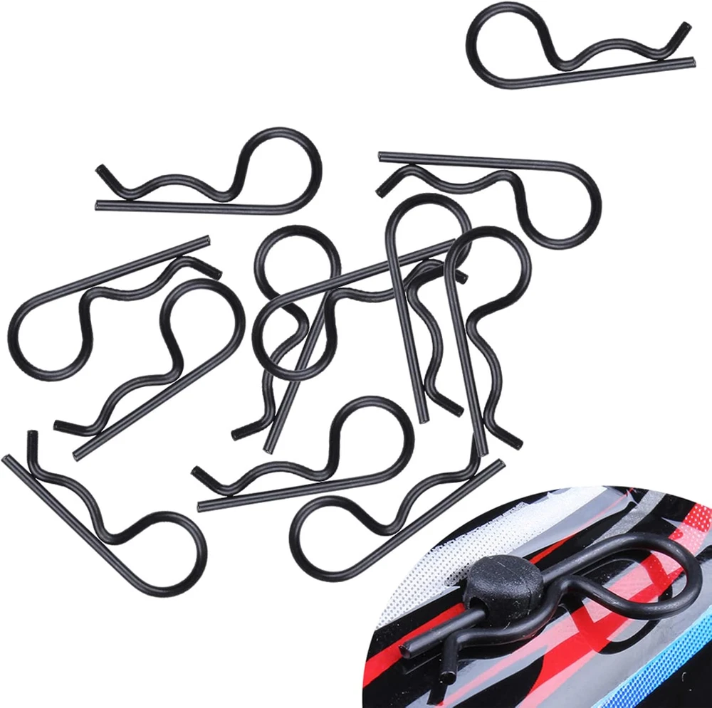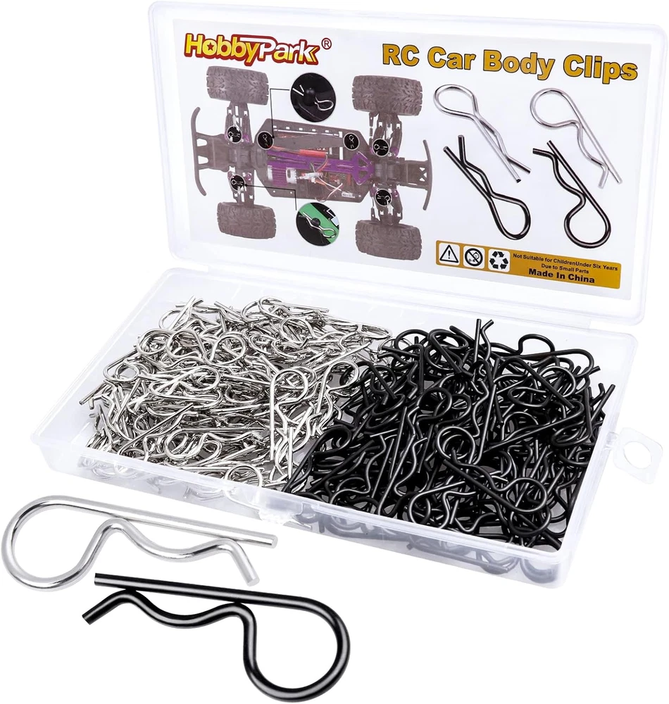 ✔Great Value: 200 pieces universal RC body clips, including 100pcs silver R clips and 100pcs black R clip pins, Packed in Transparent Box. ✔Durable material: these universal R clips are made of stainless steel, long lasting and durable,will not be corroded easily, the color is steady. Bend End Design, allowing them to be removed or installed easier. Securely fastened bodies to mounting posts. ✔Size infos: Rod diameter:Approx 0.055 inch /1.4 mm; Total length:Approx 1.04 inch / 26.5 mm; Ring diameter: Approx 0.39 inch / 10mm. Check size before buying. ✔Suitable for 1/10 Scale Traxxas TRX4/Slash/Rustler/Maxx/E Revo/Stampede/Hoss, etc Arrma Axial Losi & All 1/8 Scale RC Vehicles Models Note: The color of the item may vary slightly due to photography and your own computer /Phone Please allow some little manual measurement error. Customer Satisfaction Guarantee If you are not completely satisfied with our products, please do not hesitate to contact us to request a refund or exchange! Note: Check your specific model's manual for compatibility,or Contact us.