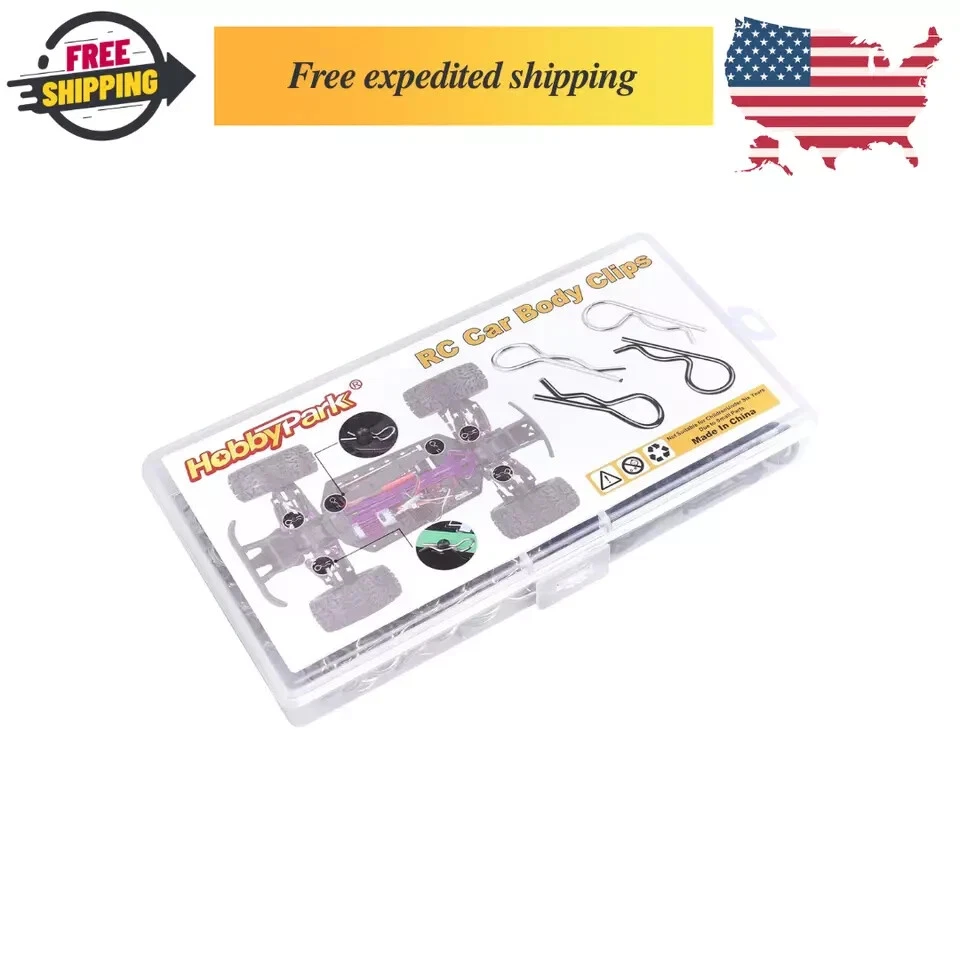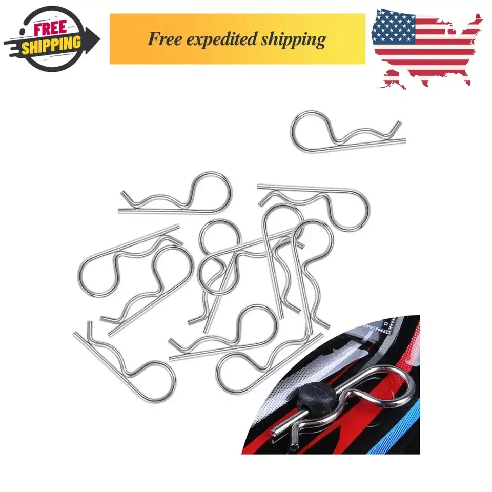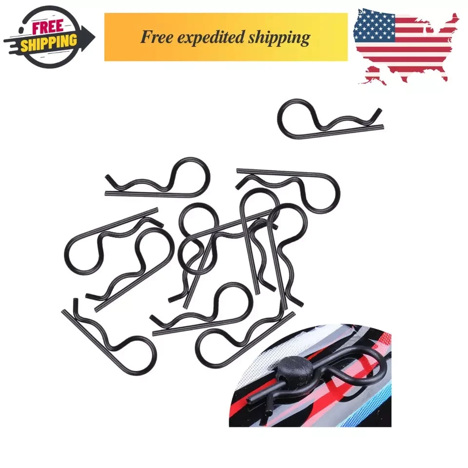 ✔Great Value: 200 pieces universal RC body clips, including 100pcs silver R clips and 100pcs black R clip pins, Packed in Transparent Box. ✔Durable material: these universal R clips are made of stainless steel, long lasting and durable,will not be corroded easily, the color is steady. Bend End Design, allowing them to be removed or installed easier. Securely fastened bodies to mounting posts. ✔Size infos: Rod diameter:Approx 0.055 inch /1.4 mm; Total length:Approx 1.04 inch / 26.5 mm; Ring diameter: Approx 0.39 inch / 10mm. Check size before buying. ✔Suitable for 1/10 Scale Traxxas TRX4/Slash/Rustler/Maxx/E Revo/Stampede/Hoss, etc Arrma Axial Losi & All 1/8 Scale RC Vehicles Models