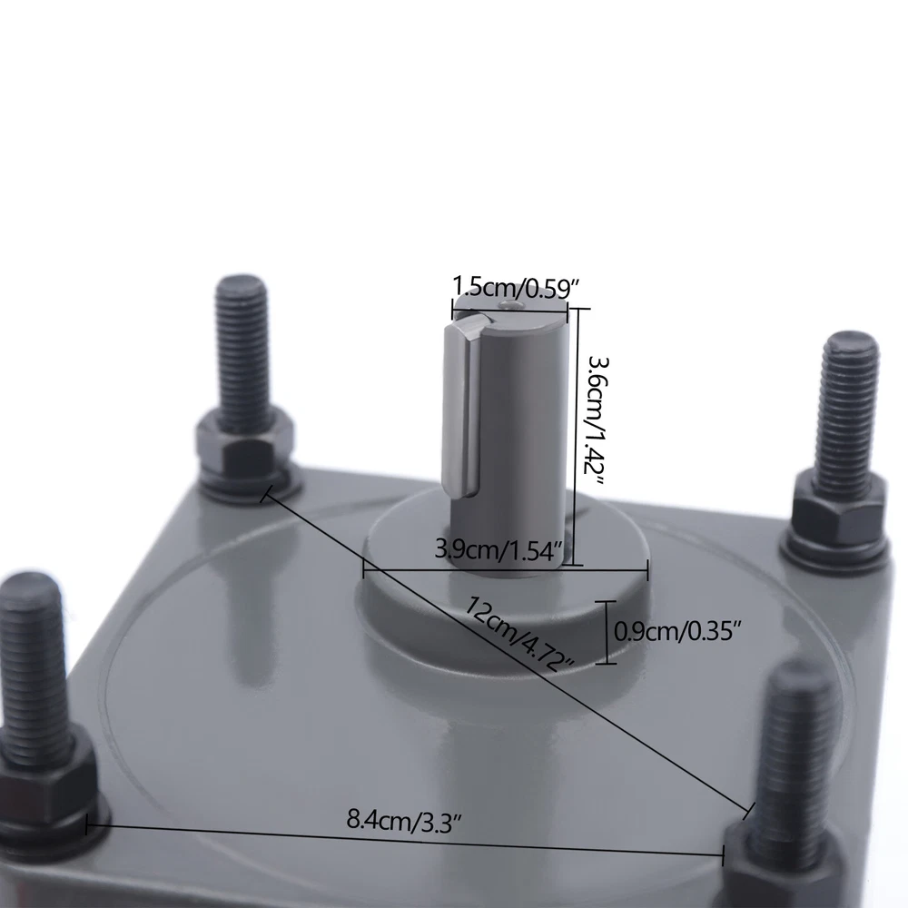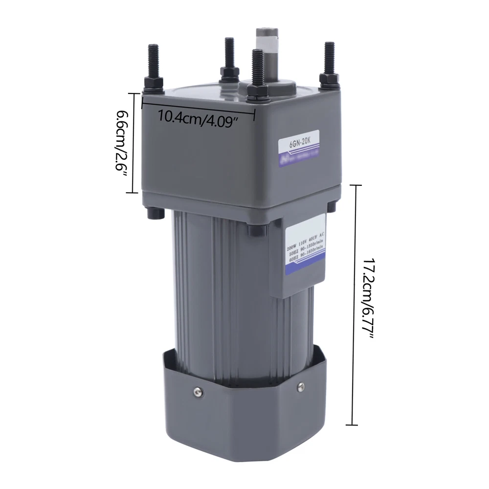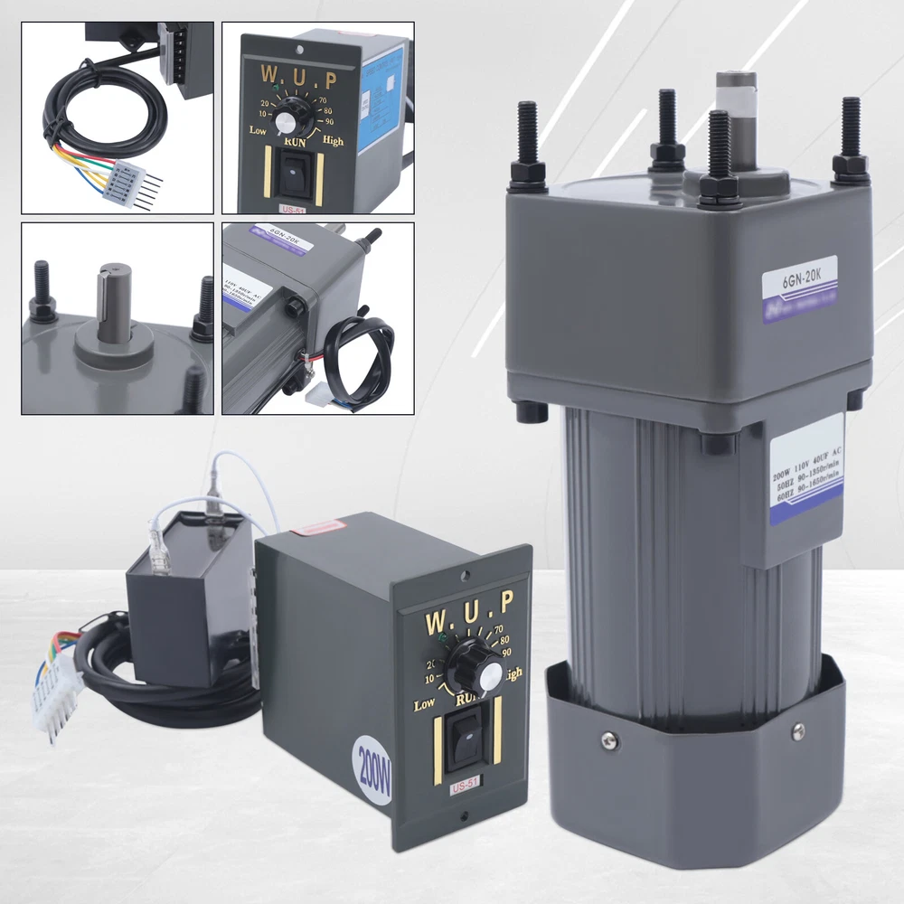 200W 110V AC Gear Motor Electric Variable with Speed Controller Single-phase 20K 110V Knob Motor Speed Controller Variable Adjustable Speed Regulator Specification Voltage: 110V Power: 200W Output Speed: 68 r/min Rated Torque: 24.1 N.m Gear Reduction Ratio: 20K Motor Gross Weight: 7kg/15.4lbs Motor Net Weight: 6.8kg/14.99lbs Motor Package Size: 32*12.5*12.5cm/12.6*4.9*4.9inch Motor Product Size: 8.4*10.4*17.2cm/3.3*4*6.77inch Package Size (Reduction Gearbox): 18.5*10.5*7cm/7.3*4.1*2.8inch Reduction Gearbox Product Size (L*W*H): 8.4*10.4*6.6cm/3.3*4*2.6inch Shaft Length (Reduction Gearbox): 3.6cm/1.4inch Shaft Thickness (Reduction Gearbox): 1.5cm/0.6inch Key Width (Reduction Gearbox): 5mm/0.2inch Shaft Eccentricity (Reduction Gearbox): 2cm/0.8inch Aperture (Reduction Gearbox): 8mm/0.3inch Disc Diameter (Reduction Gearbox): 3.9cm/1.5inch Disc Height (Reduction Gearbox): 9mm/0.35inch Diagonal Mounting Hole Distance (Reduction Gearbox): 12cm/4.7inch Hole Applicable Screw (Governor Box): M8 Speed Governor Gross Weight: 0.35kg/0.77lb Speed Governor Net Weight: 0.3kg/0.66lb Speed Governor Package Size: 18.5*10.5*7cm/7.3*4.1*2.8inch Speed Governor Product Size: 8*5.2*9cm/3.1*2*3.5inch Panel Size (Speed Governor): 10*6cm/4*2.4inch Description The stator and rotor of the gear motor adopt pure copper coils, which are more durable and make the motor's power output more smooth and stable. The gear set adopts full ball bearings and high precision alloy steel gears to effectively enhance the rotational torque of the motor and improve working efficiency. It is suitable for the packaging industry, printing industry, textile machinery, food, construction, CNC equipment, sports equipment, machine tool industry, automobile, robot industry, production plant, elevator machinery, barbecue industry, etc. Key Features More Smooth: The stator and rotor adopt pure copper coils, which are more durable and make the motor's power output more smooth. Forward and Reverse Rotatable: This motor supports forward and reverses rotation that can be achieved by changing the position of the governor wiring , so you can adjust the rotational direction according to the specific situation, which can meet your various needs. More Wear-resistant Gears: The one-piece gearbox undergoes a heat treatment process to improve the wear resistance of the gears, making the gears be used for a long period. Lower Temperature and Noise: Both ends of the rotor of the motor are equipped with ball bearings, so there is less friction, a lower temperature generated by friction, and lower noise generated. Time-saving and Effort-saving: The gearbox has a built-in solid lubricant, so it can be used for about ten years before the lubricant in the gearbox needs to be replaced, which is more time-saving and effort-saving. Large Rotational Torque: The gear set adopts full ball bearings and high precision alloy steel gears to effectively enhance the rotational torque of the motor and improve working efficiency. Fast Rotation: The bearings of the motor with a fast speed make the motor work better in a shorter period, promoting working efficiency. High-quality Material Gears: The gears of the motors are machined by micro-roll shaving with special alloy tools, so the gears have high strength, high hardness, and great durability. Stable Running: The finely manufactured parts make the top cover and bottom cover tightly and firmly combined so that the rotor can run stably. Details Fan Heat Sink and Heat Sinkhole: The built-in fan heat sink and heat sinkhole at the end of the motor make the exhaust from the end of the motor smooth to achieve effective heat dissipation and extend the life of the motor. Speed Control Knob: You can freely adjust any speed because of the infinitely adjustable speed according to the different situations by turning the speed control knob on the speed governor from 0 to one hundred percent of the speed . The faster/slower you turn the knob to the right/left, the faster/slower the speed. Application It is suitable for the packaging industry, printing industry, textile machinery, food, construction, CNC equipment, sports equipment, machine tool industry, automobile, robot industry, production plant, elevator machinery, barbecue industry, etc. Installation 1. This product needs basic assembly. Professional would be highly recommended. 2. If you have any questions, please feel free to contact us, we are willing to answer your questions. Package Included 1 * Gear Motor 1 * Speed Governor Notes This motor will reach a temperature rise of about 65 degrees Celsius during operation, which is normal and does not affect the use. Please make sure you do not mind before ordering . Please allow the slight color difference caused by the shooting light and 1-3 cm error due to manual measurement, and make sure you do not mind before ordering. Note:Based on the industrial standard, to meet different needs of customers, our motor does not include the power cord, you need to purchase the power cord to connect. Payment Delivery details Terms of sales About us Contact us Payment We accept ebay payment 。 Fees such as import duties, taxes are not included in the item price or shipping costs. These charges are the buyer's responsibility. Delivery details Shipping: 2-9 working days to: USA Terms of sales We maintain high standards of excellence and strive for hundred percent customer satisfaction. Feedback is very important to us. We hope that you contact us immediately before you give neutral or negative feedback, so that we can address your concerns. It is impossible to address issues if we do not know about them! About us Your satis faction is our ultimate goal. We work hard to earn your trust and future business. Our certified technicians have tested each item before shipping. The unit comes with 1 year limited warranty on all manufacturing defects. a) If you receive a defective item, you may return it or ask for a discount. Please contact us within 14 days