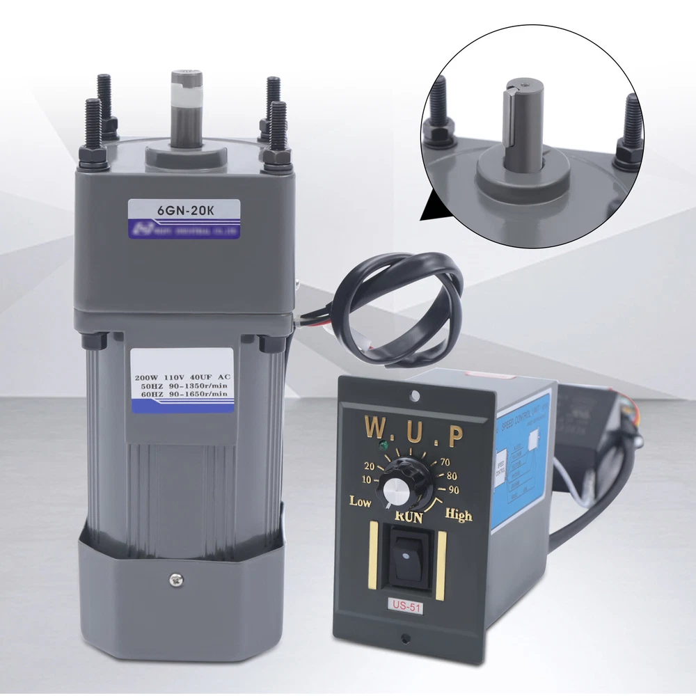 200W 110V AC Gear Motor Electric Variable with Speed Controller Single-phase 20K