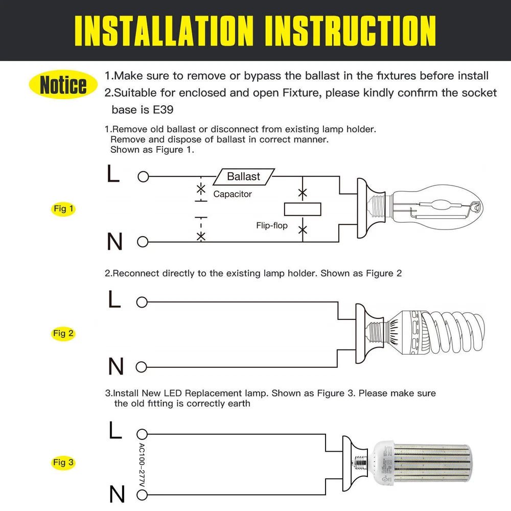 Product Description 200W LED Corn Cob Bulb 5000K For Warehouse Factory Workshop Open Fixture Light 【Super Bright】 200W led corn cob with 27000 lumens and 360 degree beam angle fits to be 800W HID Replacement retrofit. The installation height is recommended between 12ft and 16ft. 【90% Energy Saving】The LED corn light reduce more than 90% electricity consume than traditional light. Available for working voltage from 100VAC to 277VAC 【Quality Listed】The industrial quality light passed UL certification. It offers a safer using at home, commercial, industrial area. 【Easy Installation】E39 Base is easy to Connect directly a screw base. Must be remove or bypass the ballast in your electric circuit before installation. 【Long Lifespan】This bulb has 50,000 hours lifespan. Offering at least 11 years of lighting time if used 12 hours a day. 【Warranty】We provide with 5 years warranty for all our bulbs. If any problem or question about bulbs please contact us by email. We will reply within 24 hours. Product description The LED cob bulb are UL/ETL listed with outstanding industrial quality, superb energy efficiency, long lifespan and easy installation. Compared with traditional light bulbs, we provide brighter lighting and wider applications, but we have achieved up to 90% energy saving. So our LED light bulbs can help you save more than 90% of electricity bills. The design of Non-flickering No UV or IR radiation can provide higher stability and reliability when using the bulbs. Feature: 1.UL Listed 2.Replace 800W HID bulb 3.Instant lighting 4.6K high voltage surge protection 5.Non-flickering No UV or IR radiation Technical Data: 1.Lighting Technology: LED 2.Bulb Shape: Corn Cob 3.Rated Power: 200 watts 4.Input Voltage: AC100-277V 5.Bulb Base: E39 Base 6.Power Factor: >90% 7.Power Efficacy: 135 Lm/W 8.Color Temperature: 5,000K 9.Color Rendering Index (RA) : >80 10.PC Cover: Transparent 11.Materials:Aluminum+ASA 12.Lifespan: 50,000 hrs Wide Application: Indoor High Bay Area: warehouse, factory, workshop, shopping mall, church, garage, grocery, car wash-shop, gym, basketball court, tennis court, office, garden, community, back-yard, aircraft storage, farm, restaurant, airport, subway, convention center, swimming pool etc. Outdoor: Parking lot: shoebox, pole/box fixture. Street: cobra head, pole fixture. Gas station: canopy/High bay fixture. Yard/Garden: post top, floodlight/wall pack fixture, Billboard etc. About Us Payment Shipping Returns Contact Us SHENZHEN NUOGUAN TECHNOLOGY CO. LTD founded in 2010. We are high-technology comany specialized in manufacture Commercial and industrial LED light. Advanced production equipment and excellend R&D ability help us to combining service ,production sell together provide top-level products to our customers. 1. Payment is expected within 7 days of auction close. Or Unpaid Items will be forfeited per eBay . 2. Taxes may be applicable at checkout as states adopt new laws and regulations regarding sales tax collection. 1. We ONLY ship to USA . 2. Orders processed within 1-2 business day of payment verification. There’s no Delivery service or courier service on Saturdays, Sundays or Public Holidays. 3. We have 3 different warehouse in US,so due to stock status and time differences, we will choose to ship your item from our first available warehouse for fast delivery. 4. We offer Free Shipping within the Lower 48 states! All packages are sent via UPS or USPS.The delivery time for UPS Ground is typically 2-5 business days. We strive to ensure 100% satisfaction for each and every one of our customers. we offer a 30-day 100% money-back guarantee on all eBay orders. If your item isn't just as you wished, simply send it back to us and we'll refund or replace your item. Please note that all returns must be authorized by our Customer Service department. please contact us though message first if you have any problem. USA Warehouse. Fast shipping! We are appreciated your purchasing form our eBay store. Office Time: 9:30 - 18:30, Monday - Saturday (UTC+8) Please contact us with eBay Message. We will respond you within 24 hours on business day. About Us SHENZHEN NUOGUAN TECHNOLOGY CO. LTD founded in 2010. We are high-technology comany specialized in manufacture Commercial and industrial LED light. Advanced production equipment and excellend R&D ability help us to combining service ,production sell together provide top-level products to our customers. Payment 1. Payment is expected within 7 days of auction close. Or Unpaid Items will be forfeited per eBay . 2. Taxes may be applicable at checkout as states adopt new laws and regulations regarding sales tax collection. Shipping 1. We ONLY ship to USA . 2. Orders processed within 1-2 business day of payment verification. There’s no Delivery service or courier service on Saturdays, Sundays or Public Holidays. 3. We have 3 different warehouse in US,so due to stock status and time differences, we will choose to ship your item from our first available warehouse for fast delivery. 4. We offer Free Shipping within the Lower 48 states! All packages are sent via UPS or USPS.The delivery time for UPS Ground is typically 2-5 business days. Returns We strive to ensure 100% satisfaction for each and every one of our customers. we offer a 30-day 100% money-back guarantee on all eBay orders. If your item isn't just as you wished, simply send it back to us and we'll refund or replace your item. Please note that all returns must be authorized by our Customer Service department. please contact us though message first if you have any problem. Contact Us USA Warehouse. Fast shipping! We are appreciated your purchasing form our eBay store. Office Time: 9:30 - 18:30, Monday - Saturday (UTC+8) Please contact us with eBay Message. We will respond you within 24 hours on business day. You may also like 100W LED Barn Light with Dusk To Dawn Photocell Outdoor Garden Yard Night Light 69.05 USD Free shipping 200W UFO LED High Bay Light
