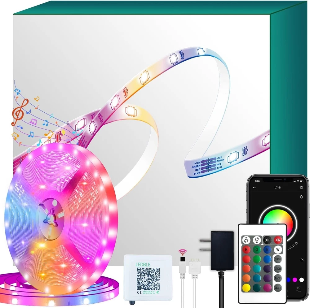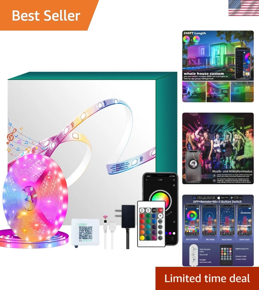 200ft Led Strip Lights2 Rolls of 100ft led Lights Ultra Long Led Light Strip with App Voice Control Remote,5050 RGB Music Sync Color Changing Led Lights for Bedroom,Party,Home Decoration 【200ft/60m Led Strip Lights】(2 rolls 100ft led strip lights)Super bright and high-quality LED strips,5050 RGB be cut every 3 LEDs along the cutting marks if you don't need such a long light,Led lights more than 50000 hours service life. The certified power adaptor which was tested by rigorous, high standard features high security. The working voltage for 150ft led strip lights is only 12V, which emits extremely low heat. Protection puts your safe. 【Multiple Mode to Control Your Lights】Control the LED strip lights via(APP+ IR Remote+Mic+4 buttons ) ①APP Control:Scan the QR code in manual to Download the app"Ehome Light"( Google Play and iOS App Store) Adjust brightness, change colors.②Music and Mic Functions :Built-in mic, lights will pulsate and change colors along with the environmental sound and music③IR Remote:20-key 4 music mode to control the light strip④4-button controller:Through 4 keys switch between static, dynamic,and MIC mode. 【 Mic and Music Functions&Timing OFF/ON】①Micro mode, which you can sing or speak through the micro then lights will change colors and pulsate along.②Music mode,play local music through mobile , turn to the music model, then you’ll see the light will change color with the music beats. ③Smart Timing OFF/ON mode,Set an Timing OFF/ON for your sleep.''' 【Widely to Use&Easy Installation】Plug and Play,APP Group Management;When you want to control several light bars at the same time through the APP, you need to create several groups to control them separately,Suitable for bedroom,projector screen,kitchen, cabinet, car, living room, party, Christmas or wedding,dorm rooms, bars and shops,stairs,With Strong 3M Back adhesive for planning the route of your strip or fix the bent strips at corners.''' 【100% Satisfaction SATISFACTION GUARANTEE】If you still have any problem, please contact to us, we will get it resolved within 24 hours. Notices:The Led Light Strip is non-waterproof.'''