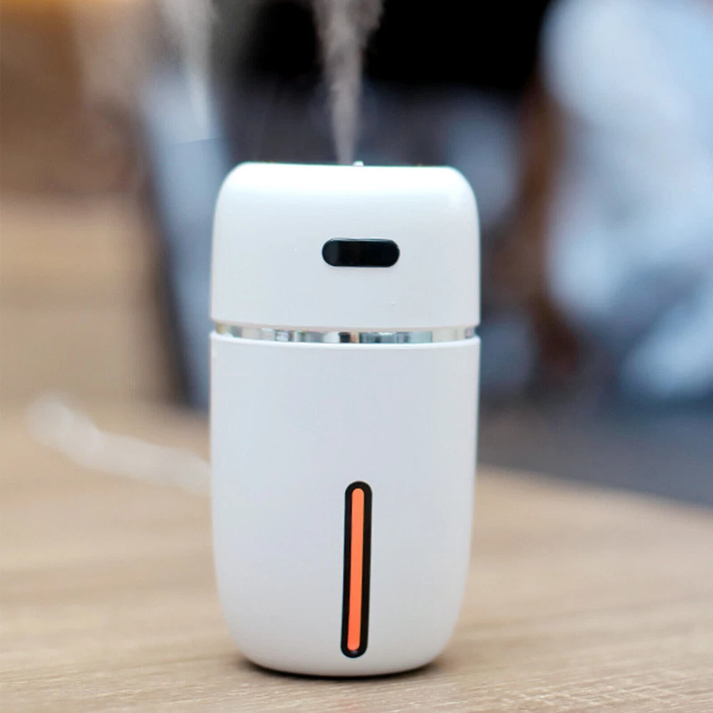 Product Description: New Arrival Specifications: * Materials: ABS+PP+Silicone+Electric Parts * Working Voltage:DC 5V * Working Current:500mA * Power Usage:2.5W * Capacity:200ML * Spray Output:30mL/H * Timing:4.5H of First Mode / 9H of Second Mode * Item Color:White/Black * Item Size:133.5*72*72mm / 5.25*2.83*2.83inch * USB Cable Length: Appro. 1m Steps of Use: 1.Turn counterclockwise and unscrew cap of bottle 2.Add approprate amount water 3.Turn clockwise and tighten the top cover 4.Plug in the power click the function key the humidifier work First time ,press the function key for 1.5s to turn on the night light mode,7 colors lights will change automatically; Then press and hold for 1.5s,the light is fixed. Press again and hold for 1.5s,to turn off the night light mode. Package includes: 1 x Humidifier 1 x USB Cable 1 x User Manual