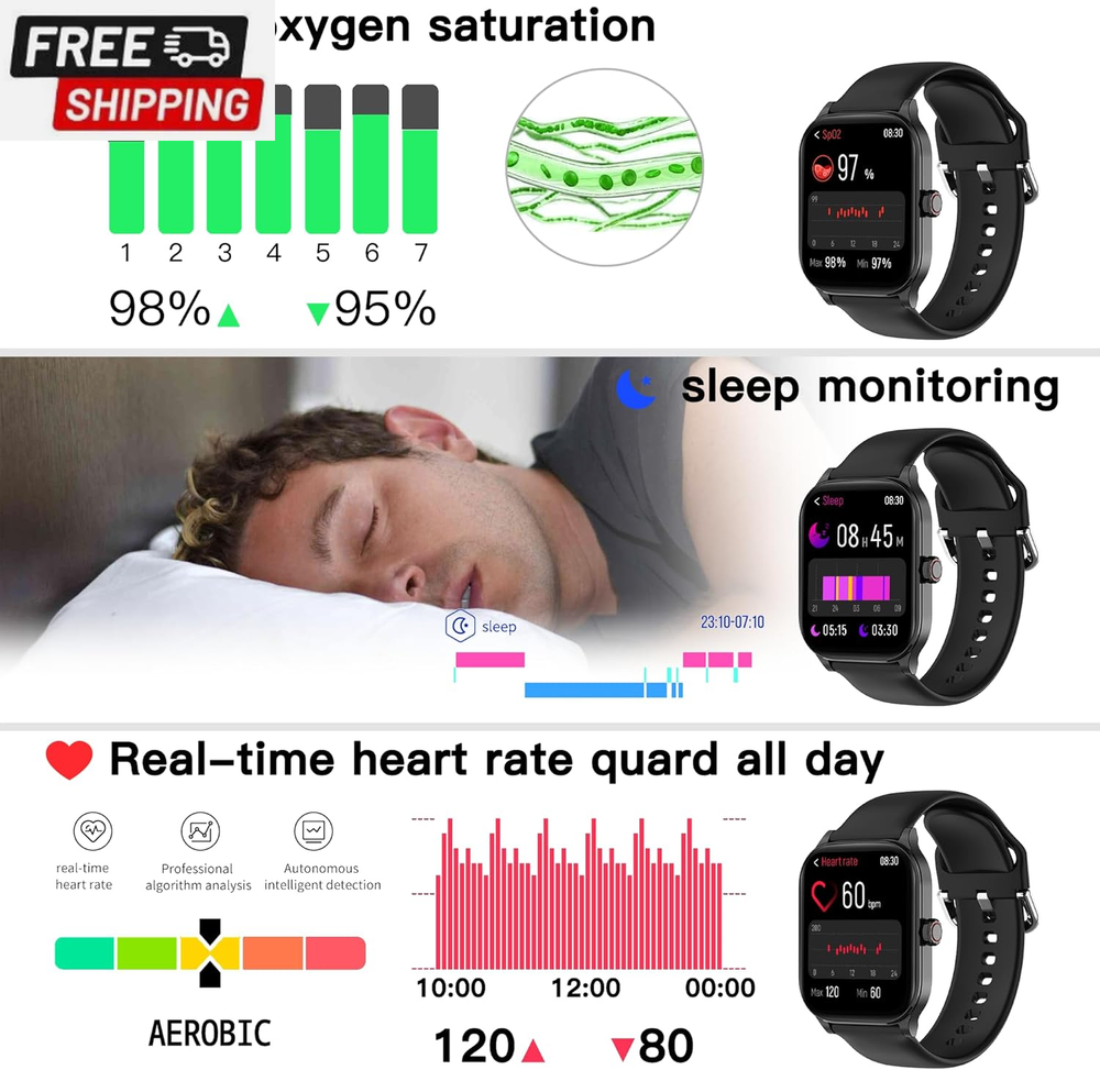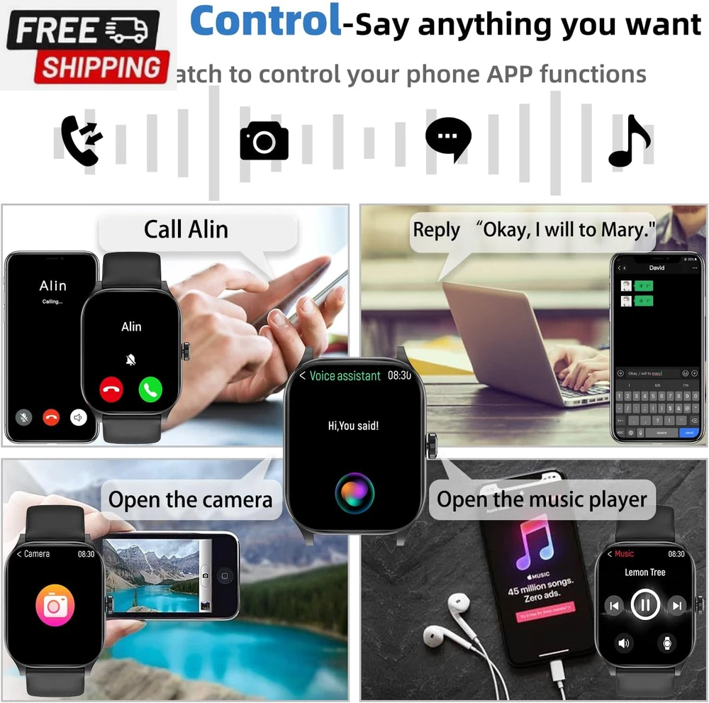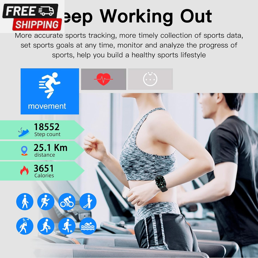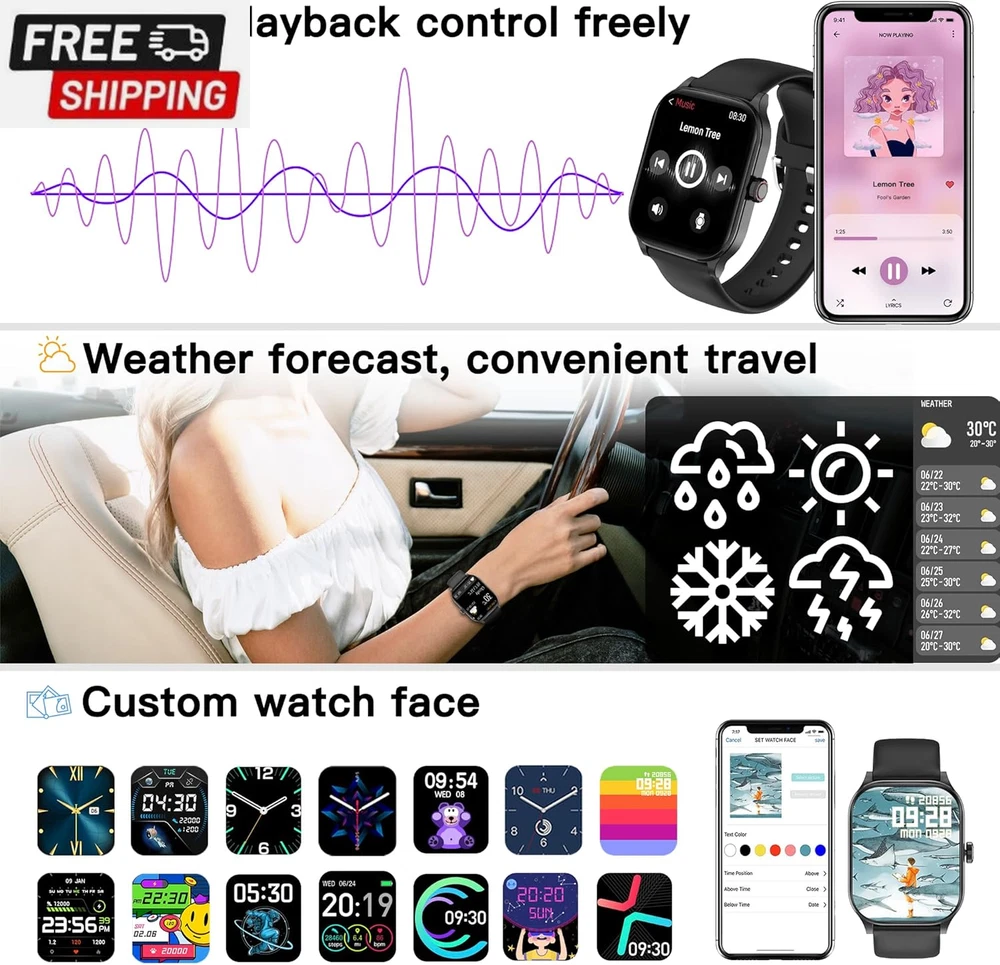 This smartwatch is a game-changer! The large 2.01" screen is crystal clear, and I love being able to answer calls directly from my wrist. The fitness tracking is super accurate - heart rate, sleep monitoring, and step counting all work flawlessly. It syncs perfectly with both my Android phone and my wife's iPhone. The battery lasts for days, and the IP68 waterproofing gives me peace of mind during workouts. Setup was a breeze, and the customer service team was incredibly helpful when I had questions. For the price, you get premium features usually found in much more expensive models. The fast shipping and money-back guarantee made buying risk-free. Highly recommended for anyone wanting a feature-packed smartwatch!