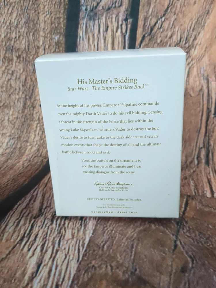 Character: Darth Vader, Emperor Palpatine Style: Empire Franchise: Star Wars UPC: 0795902140885 Number of Items: 1 Time Period Manufactured: 2010-2019 Type: Ornament gtin13: 0795902140885 Country/Region of Manufacture: China Handmade: Yes Original/Licensed Reproduction: Original Brand: Hallmark MPN: QXI2033 Collection: Star Wars Year Manufactured: 2010 Occasion: Christmas Features: Handmade, Light Up, Sound