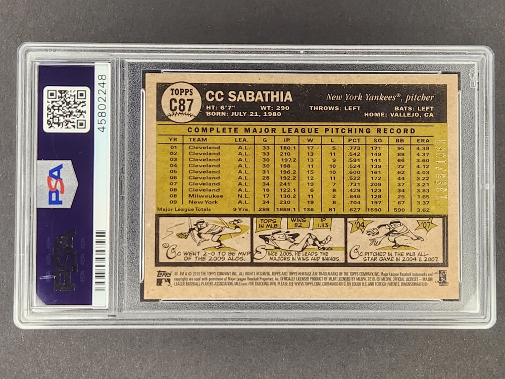2010 Topps Heritage - Chrome #C87 C.C. Sabathia /1961 PSA MINT 9 π₯π₯π₯ Check my other listings for more Sports Cards, Coins and Bullion. Accepting offers all day everyday. No Returns Accepted. Please purchase wisely. Thank you!