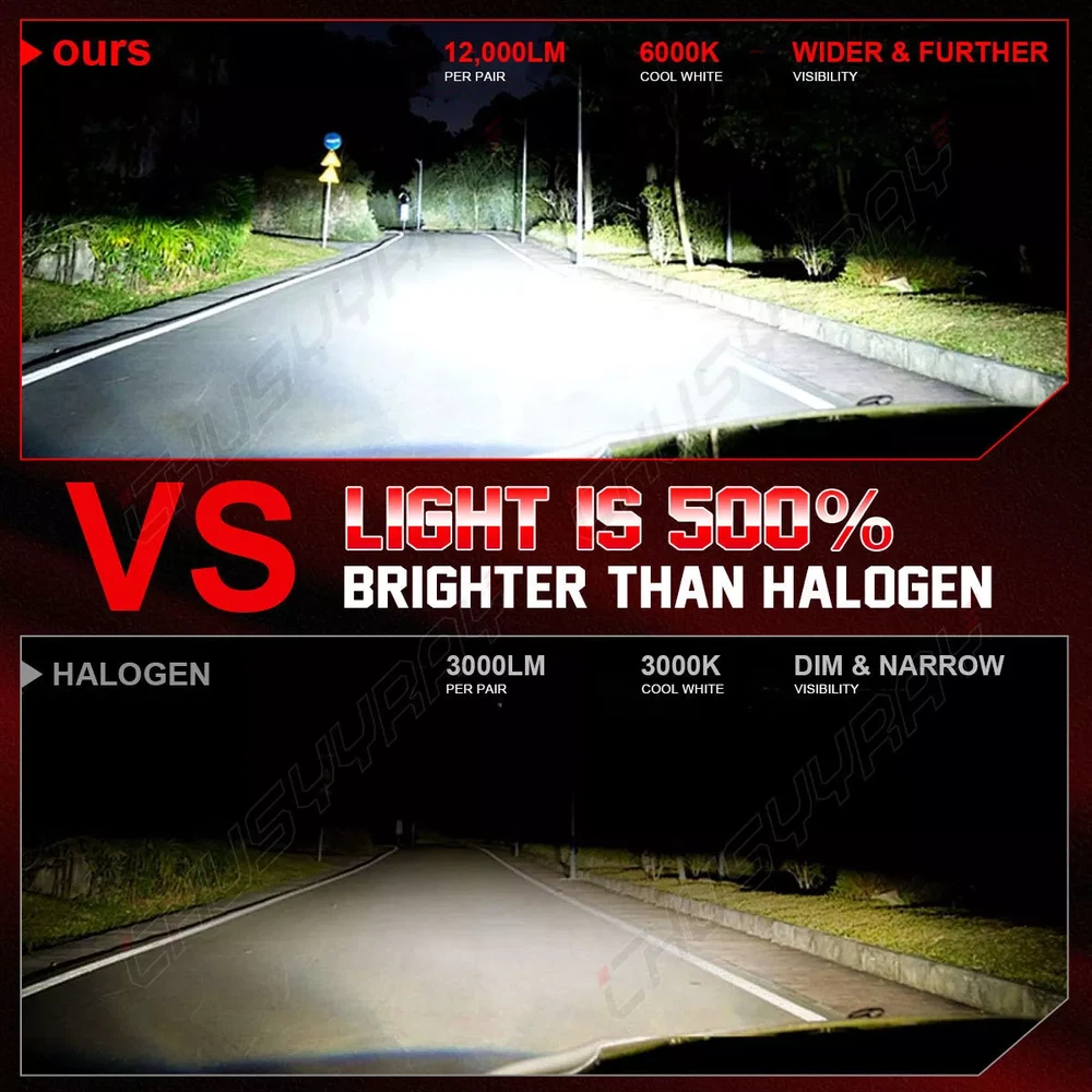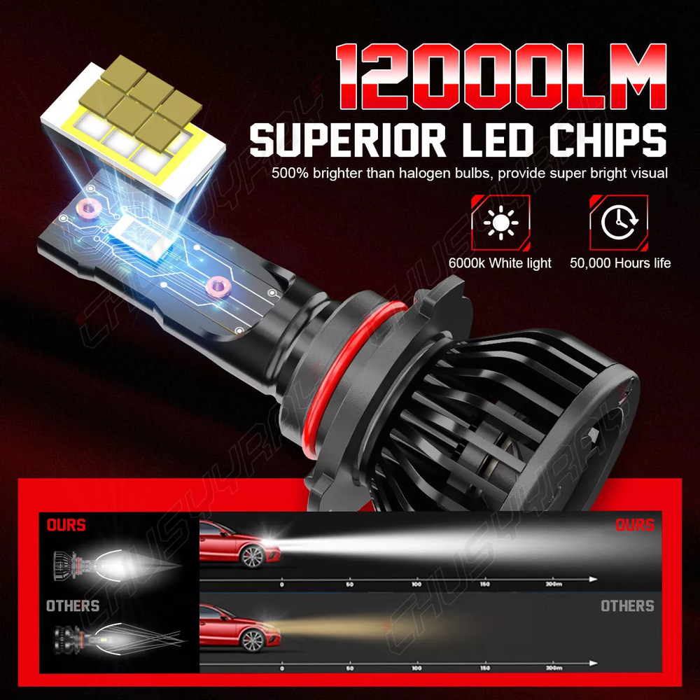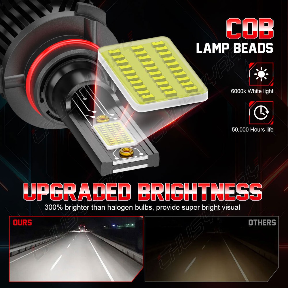 Features: No dark spot No shadows Increase night visibility 1:1 mini size as original halogen bulbs for higher compatibility and simple installation. High brightness: LED headlight features a better performance on brightness, providing further and wider visibility for you to see the deer, wild animals, falling rocks, or other obstacles in advance to ensure safer driving at night. Specifications: Bulb Size: 9005 + H11 Usage: Headlight / Fog Light / Daytime Running Light Lighting Technology: LED Package includes: 2 Bulbs Voltage: DC 9-32V Wattage: 100W/Set (50W/bulb) Luminous Flux: White 10000LM/per Bulbs Color Temperature: 6000K Super White Lifespan: Over 50,000 hours Certification: IP68 Waterproof and Dust Seal Operating Temperature: -40-80 degree Celsius, 100% Brand New Warranty: 5 years warranty Placement on Vehicle: Front, Left, Right Fitment Type: Direct Replacement Beam Angle: 360 Degree Package Included: 4Pcs 9005+ H11 High Low Beam Led Headlights Boxes are shipped randomly Note: Please check your car manual or original bulb to confirm the bulb size, length is correct or not before purchasing to save your time. After buying enough products, please contact us directly if you have any questions, our customer service team will reply your questions/questions within 0-48 hours, thank you for your support!