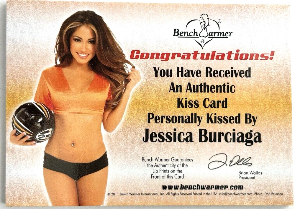 2011 BENCH WARMER LIMITED EDITION AUTHENTIC KISS CARD #09/15 ~ JESSICA BURCIAGA (Playboy Playmate of the Month, February 2009 Issue) ~ Card is in Near Mint Condition ~ I do Combine on Shipping! You Will Not Be Charged any Extra for Additional Cards Purchased. If You Purchase Multiple Cards, Please Wait to Pay Until I Send You an Invoice for Entire Amount with Total Shipping Charge. If you are not satisfied with the condition of this card, feel free to return it in its delivered condition for a no-fuss refund. Thanks for Looking!