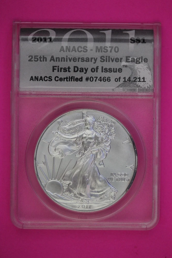 2011 MS 70 Silver American Eagle 25th Anniversary First Day Issue ANACS 543