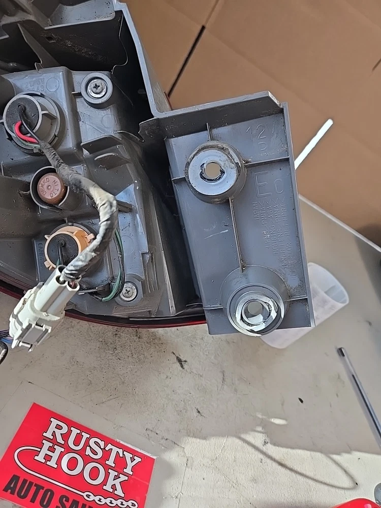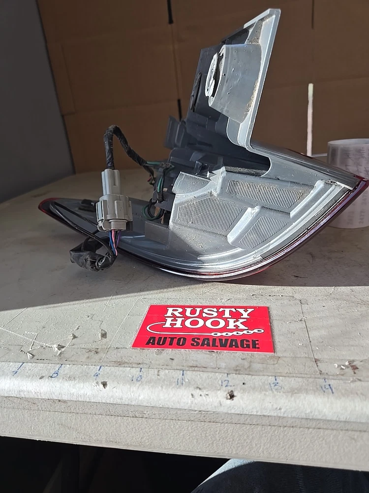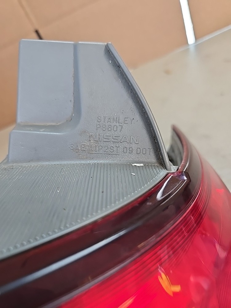 Used right side tail light assembly for a 2011-2017 Nissan Quest. It comes with an unspecified length manufacturer warranty, is a direct replacement with the part number SAE AIP2ST 09 P8607, and does not include mounting hardware. The tail light is designed for the left side of the vehicle and is compatible with the specified years and models of the Nissan Quest.