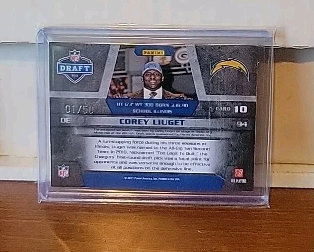 2011 Panini Limited Draft Day Materials Jerseys Prime 1/50 Corey Liuget RC. Condition is Ungraded. Shipped with USPS Ground Advantage.