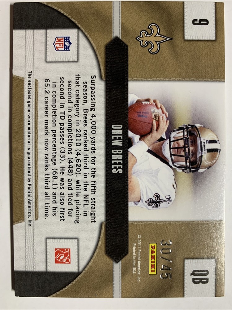 2011 Panini Threads Game Day Jerseys Drew Brees Logo Patch Jersey 30/45 Prime