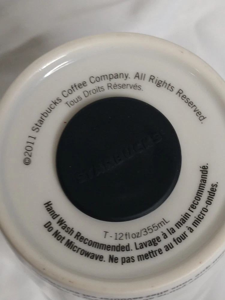 2011 Starbucks White Siren 12 oz Ceramic Travel Tumbler Coffee Mug Without Lid.