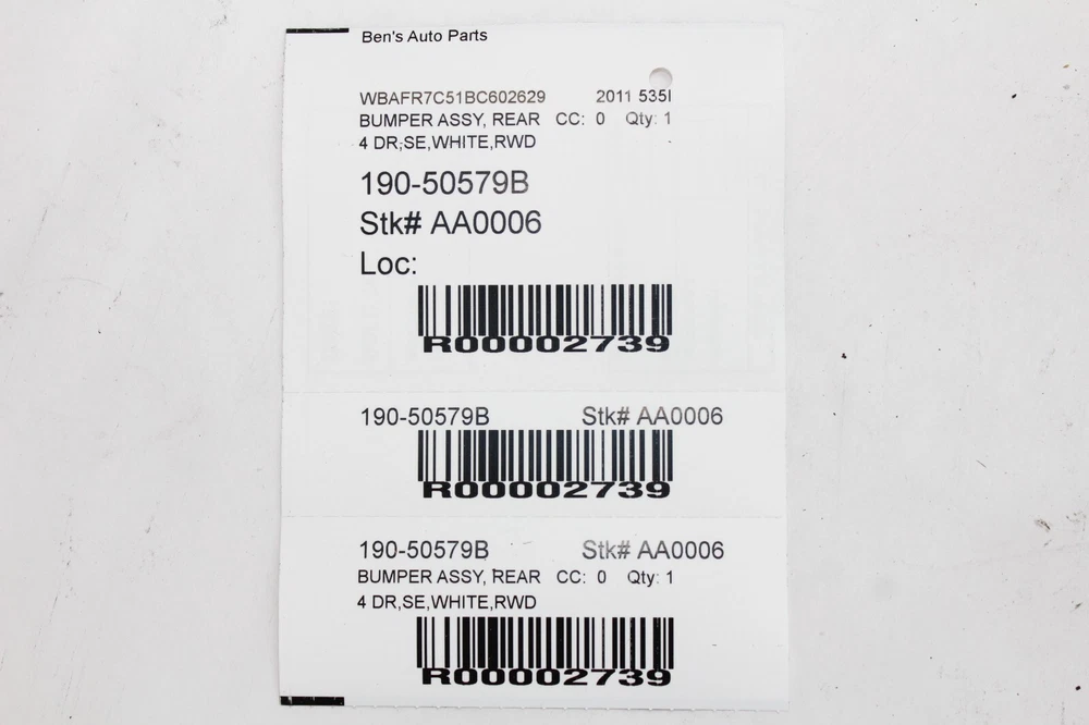 2011-2013 BMW F10 528i 535i 550i SEDAN REAR BUMPER COVER WHITE OEM WORKING CONDITION! NEEDS PAINTING! -PLEASE MAKE SURE THIS IS CORRECT PART FOR YOUR VEHICLE -PLEASE CHECK PHOTOS FOR CONDITION -YOU WILL GET WHAT YOU SEE ITEM CONDITION: ALL OUR PARTS ARE TESTED BEFORE BEING REMOVED FROM THE VEHICLE. IT HAS NORMAL WEAR OF USE BECAUSE IT IS A USED PART. PLEASE NOTE THAT ALMOST ALL ITEMS WE SELL ARE USED, IF YOU BOUGHT AN ITEM AND IT DOESN'T MATCH OR IT IS DEFECTIVE, PLEASE CONTACT US FIRST BEFORE LEAVING FEEDBACK, WE WILL RESOLVE ANY ISSUES. WARRANTY: MOST PARTS WE SELL THROUGH EBAY MOTORS COME WITH A 90-DAY MONEY-BACK OR EXCHANGE GUARANTEE. THE 90 DAY PERIOD STARTS WHEN YOU TAKE POSSESSION OF THE PART. IF YOU HAVE ANY ISSUES WITH THE ITEM OR SERVICE PLEASE LET US KNOW SO WE CAN WORK IT OUT. GOOD SERVICE AND POSITIVE FEEDBACK ARE IMPORTANT TO US. IF YOU PURCHASED PART BY MISTAKE / CHANGED YOUR MIND OR IT DOES NOT FIT YOUR VEHICLE, WE WILL REFUND YOUR MONEY. NO LABOR WARRANTY IS PROVIDED. OUR SHOP WILL NOT BE HELD RESPONSIBLE FOR ANY DAMAGES THAT OCCUR ON THE BUYER'S VEHICLE DURING INSTALLATION OR USE OF ANY PART. SHIPPING POLICY: MOST OF THE SMALL-MEDIUM PARTS WILL BE SHIPPED SAME DAY IF ORDER HAS BEEN PLACED BEFORE 2PM PT. ANY ORDERS PLACED AFTER 2PM PT WILL BE SHIPPED NEXT BUSINESS DAY, EXCEPTIONS ARE OVERSIZED & FREIGHT ITEMS. LARGE ITEMS SUCH AS HOODS, DOORS, BUMPERS, TRUNK LIDS, ENGINES, TRANSMISSIONS, AND OTHER BULK ITEMS ARE SHIPPED VIA FREIGHT AND MAY REQUIRE A BUSINESS ADDRESS FOR DELIVERY. IF EBAY SHOWS YOU THAT THERE IS NO DELIVERY TO YOUR STATE OR COUNTRY, WRITE TO US, WE WILL TRY TO SOLVE THE PROBLEM. RETURN POLICY: IF THERE IS ANY QUESTIONS ABOUT THIS PRODUCT OR YOU NEED TO RETURN IT, PLEASE DO NOT HESITATE TO CONTACT US VIA EBAY MESSAGE BEFORE YOU LEAVE NEGATIVE FEEDBACK OR OPEN A RETURN REQUEST. WE OFFER A 30 OR 90-DAY RETURN POLICY ON ANY REASON, SUBJECT TO EBAY'S RETURN POLICY. WE ARE NOT RESPONSIBLE FOR ANY LABOR FEE ASSOCIATED WITH THE INSTALLATION OR REMOVAL. IF WE RECEIVED A RETURN AND NOTICED THAT THE ITEM WAS OPENED, OR FOUND DAMAGE THAT WAS NOT THERE, OR THE BUYER SENT US A DIFFERENT PRODUCT OR SIMILAR PRODUCT, BUT WITH A DIFFERENT PART NUMBER- WE ARE ENTITLED TO DEDUCT UP TO 50% ON A REFUND, ACCORDING TO THE EBAY SELLER PROTECTION POLICY. FEEDBACK AND RATING: DEAR CUSTOMERS, WE ALWAYS EXPECT TO HEAR ONLY POSITIVE FEEDBACK! IF YOU ENCOUNTER AN ISSUES WITH ONE OF OUR PRODUCTS, PLEASE CONTACT US BEFORE LEAVING A NEGATIVE FEEDBACK OR OPENING A CASE. WE ARE HERE TO HELP RESOLVE ANY PROBLEM. WE STRIVE FOR EXCELLENT CUSTOMER SERVICE AND WANT TO ENSURE THAT EVERYONE IS A SATISFIED, RETURNING CUSTOMER!
