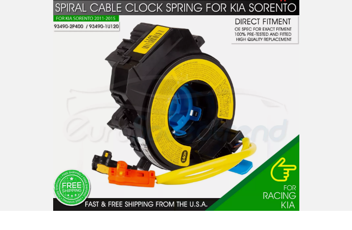 Replace your damaged OE Spiral Clock Spring units with our direct-fitment engineered units from EuroSpeedTrend Premium Quality Spiral Cable Clock Spring Units for Kia Sorento 2011-2015 Model Years . Our Clock Spring Sensors are OE Spec to ensure perfect fitment and function. They are brand new fully tested units offered at a resonsable price point while providing you with the best protection for daily / performance driving. EuroSpeedTrend delivers the best quality and performance for your beloved vehicles hands down. Please refer to the recommended vehicles list below. Recommended Vehicles KIA Sorento - 2011-2015 double check the part number on your car before ordering as this is the most accurate way beside the vehicle model & year) NOTE: I certify this airbag is not subject to recall and will be shipped in accordance with hazmat shipping requirements Item Specs OE Reference Number : 93490-2P400 Material : Premium Quality Direct-Fit Replacement Electrical Operated Switch Fitment : Direct Fit Fitment - OE spec form and function Simple Installation : This is a 15-30 Minutes installation job for most DIYers, however Professional Installation is Recommended Cross Reference Part Numbers : 93490-1U180 / 93490-1U125F / 934901U480CA / 934901U180 / 934901U125FFF / 93490-1U480CA / 93490-1U480 / 93490-2P400 / 934902P400 / 93490-1U120 / 934901U120 Purchase 1x EuroSpeedTrend Premium Quality Spiral Cable Clock Spring Units 93490-2P400 for KIA Sorento 2011-2015