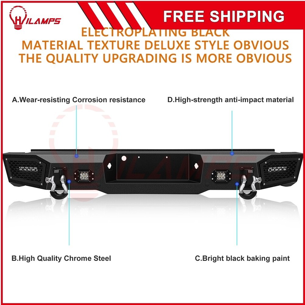 Fitment: NEW-Complete Steel Rear Bumper Assembly For 2011-2016 Ford F250 F-250 Position: Placement on Vehicle:Rear Package Included: 1x rear bumper assembly Product description: Brand New in the box Chrome Bumper, Black Step Pad Fit Fleetside/Styleside - Standard Bed models Without Park Assist Sensor Holes & Corner Steps Exactly the same as picture show Specification: Color:Chrome and Black Material:Chrome Placement on Vehicle:Rear Steel Rear Bumper Guard LED Light Bar Fog Lamps For 2011-2016 Ford F 250 6.7L Fitment: NEW-Complete Steel Rear Bumper Assembly For 2011-2016 Ford F250 F-250 Position: Placement on Vehicle:Rear Package Included: 1x rear bumper assembly Product description: Brand New in the box Chrome Bumper, Black Step Pad Fit Fleetside/Styleside - Standard Bed models Without Park Assist Sensor Holes & Corner Steps Exactly the same as picture show Specification: Color:Chrome and Black Material:Chrome Placement on Vehicle:Rear Item Specifics Brand hilamps Manufacturer Part Number 12374914 Manufacturer Warranty 1 Year Other Part Number Fits 2011 2012 2013 2014 2015 2016 Ford F 150 Placement on Vehicle Rear Fitment Type Direct Replacement Material Heavy Duty Steel Color Black Surface Finish Powder Coated Custom Bundle No Type Bumper Assembly Modified Item No Features Mounting Hardware Included,Scratch-resistant Applicable Regions US Installation Simple Bolt-On, No Drilling Required Interchange Part Number Back Bumper Repalcement,Iron,Steel,Off road,Textured,Bumper Guard Finish Textured Black Powder-Coat D-Ring Capacity 4.75 ton Instruction Included Yes D-rings Included Yes Lights Included Yes Applicable Regions US D-rings Included Yes Installation Simple Bolt-On, No Drilling Required Interchange Part Number Back Bumper Repalcement,Iron,Steel,Off road,Textured,Bumper Guard Finish Textured Black Powder-Coat D-Ring Capacity 4.75 ton Lights Included Yes Instruction Included Yes Payment 1.We only accept PayPal. 2.Please do not use the PayPal note field to indicate us to ship to other address. The note there will NOT be read. If you want to change the shipping address, please contact us by eBay messages. 3.(if you want cancel orders or change address pls contact us within 6 hours after payment,or we are not responsible for shipping a replacement.) 4.Payment must be received within 10 days as auction ended or order might be delayed. Shipping 1. Orders processed within 24 hours of payment verification.(if you want cancel orders or change address pls contact us within 6 hours after payment,or we are not responsible for shipping a replacement.) 2. We only ship to confirmed PAYPAL addresses. Your PAYPAL address must match your Shipping address. 3. The images shown are not the actual item and are for your reference only. 4. Fast shipping:All our packages use USPS First Class/UPS/Fedex... Package Service 5. If you have not received your shipment within 15 days from payment , please contact us. We will track the shipment and get back to you as soon as possible with a reply. Our goal is customer satisfaction! Returns 1. You have 30 days to contact us and 10 days to return it from the date it was received. If this item is in your possession more than 7 days, it is considered used and we will not issue you a refund or replacement. There are NO EXCEPTIONS! 2. All returned items must be in the original packaging and you must provide us with the shipping tracking number, specific reason for the return, and item custom lable. 3. We will refund your full winning bid amount, upon receipt of the item in its original condition and packaging with all components and accessories included, AFTER both Buyer and Seller cancel the transaction from eBay. OR, you may choose to have a replacement. 4. Return shipping is to be paid by the Buyer. Feedback 1. We maintain high standards of excellence (five stars review)and strive for 100% customer satisfaction! FEEDBACK IS VERY IMPORTANT TO US. We request that you contact us immediately BEFORE you give us neutral or negative feedback, so that we can satisfactorily address your concerns. 2. It is impossible to address issues if we do not know about them! Shop Category Store Home Towing Mirrors Sensors Cooling System ◈ Radiator ◈ Cooling Fan ◈ Thermostat Housing ◈ Water Pump ◈ Oil Coolers Air Conditioning System ◈ Condenser ◈ Module & Resistor ◈ Blower Lamps ◈ Brake light ◈ Instrument Light ◈ Headlight Assembly ◈ Side Marker light ◈ Headlight Truck Bed Accessories CV Axle Shaft Alternator Radiator Brake pads Steering Shaft Windshield Wiper Motor Strut Assemblies Door Handle Wheel Hub Bearing Assembly Wheel Adapters Window Switch Bumpers Window Regulator Compressor Window Visor Drive shaft CDI BOX Other Hot Item LED Third 3rd Brake Light For 93-11 Ford Ranger 99-16 F250 F350 F450 Super Duty USD 19.54 BLACK HOUSING FOR 97-07 DODGE DAKOTA LED REAR THIRD 3RD TAIL BRAKE LIGHT LAMP USD 22.94 For 99-16 Ford Super Duty 2-Row LED Rear Third 3RD Tail Brake Light Stop Lamp USD 20.79 For 2014-2018 Chevy Silverado & GMC Sierra 1500 2500 LED 3rd Brake Light Smoke USD 29.74 FOR 1997-2003 FORD F150 BLACK HOUSING LED THIRD 3RD TAIL BRAKE LIGHT LAMP BAR USD 21.94 Delivery New List Item For Dodge Ram 1500 Pickup Ram 3500 2003 2004 2005 56045537AB Headlight Switch USD 24.09 For Ford Expedition 2019 - 2022 Ford F-150 2015-2020 Front Right Side CV Axle USD 74.89 For 2002-05 Buick LeSabre Cadillac DeVille 700110 HVAC A/C Heater Blower Motor USD 39.99 For Yamaha Kodiak 400 YFM400 01 02 Warrior 350 YFM350X 1997-2001 New CDI Box USD 29.99 Top Steel Rear Bumper w/ LED Lights &Winch Plate For 2015-2017 Ford F-150 5.0L USD 490.99 Help & Info Payment Policy Shipping Policy Return Policy FAQ About Us Steel Rear Bumper Guard LED Light Bar Fog Lamps For 2011-2016 Ford F 250 6.7L Fitment: NEW-Complete Steel Rear Bumper Assembly For 2011-2016 Ford F250 F-250 Position: Placement on Vehicle:Rear Package Included: 1x rear bumper assembly Product description: Brand New in the box Chro