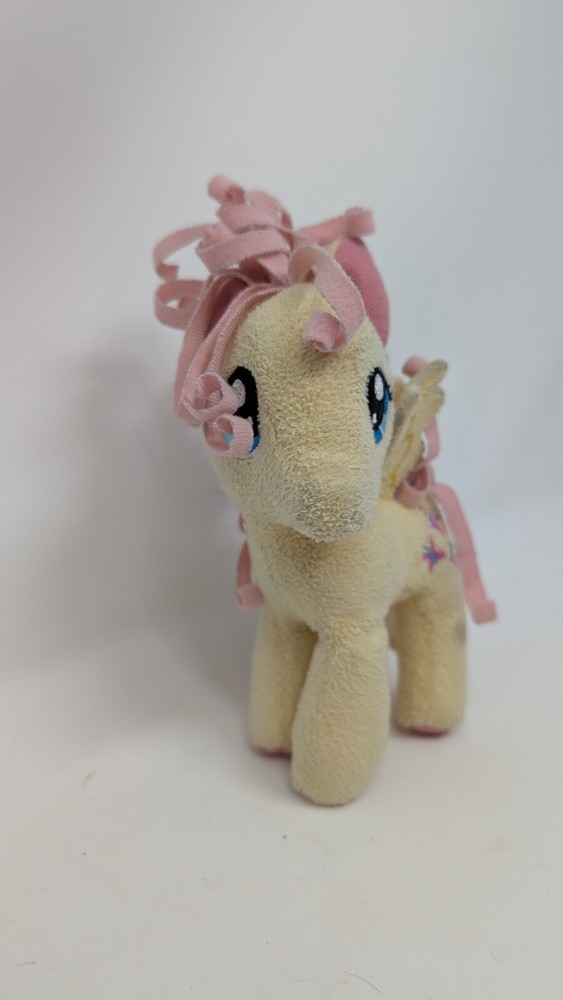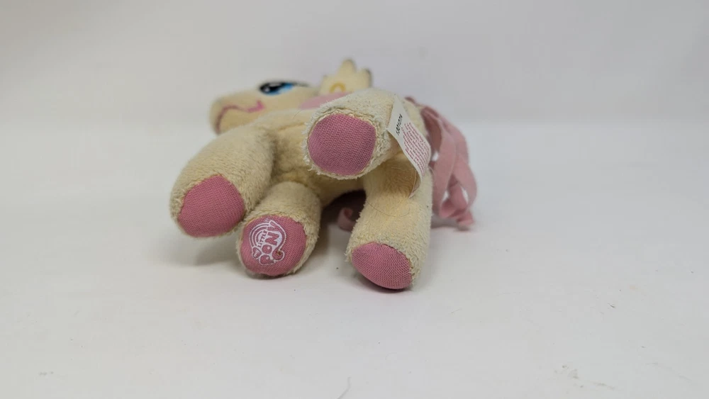 This 2012 Hasbro "My Little Pony" Fluttershy plush is perfect for fans of the popular toy line. Measuring 6 inches, this light yellow plush is made from high-quality materials and features the beloved character from the series. Suitable for children and adults alike, this plush is ideal for cuddling or displaying as part of your collection. With its vibrant colors and attention to detail, this Fluttershy plush is sure to please anyone who loves "My Little Pony." Made in China, this plush is part of a line of stuffed animals that are perfect for any occasion, whether it's a gift for a friend or a addition to your own collection.