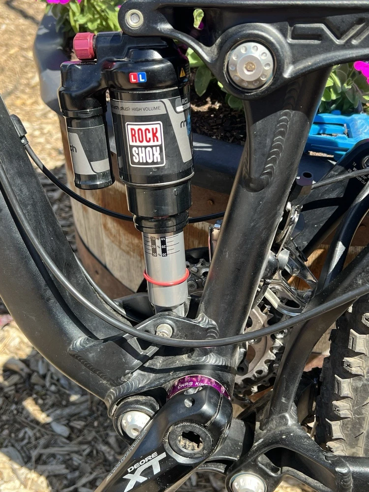 2012 Niner WFO size Medium with custom hand built wheels and custom spec. Very low miles because the owner wasn’t that into riding. Shimano Dynasis 2x10 speed with Wolf goat link and large cog. Tubeless tires will need fresh sealant but tires hold air. Seat post will need air before use. Shock and fork will need air before use. Drivetrain shifts great. Pedals and saddle are not included.