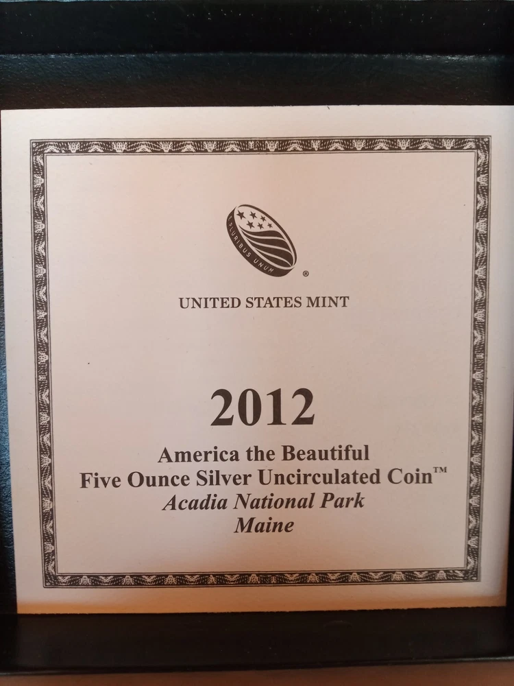 2012 P - Acadia National Park - 5 oz Silver Coin - Mint Box & COA - .999 - ATB