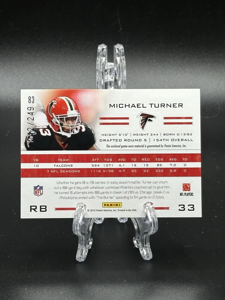 2012 Panini Certified Blue Game Worn Jersey Patch Michael Turner /249. Condition is Ungraded. Shipped with eBay Standard Envelope for Eligible Items up to $20.