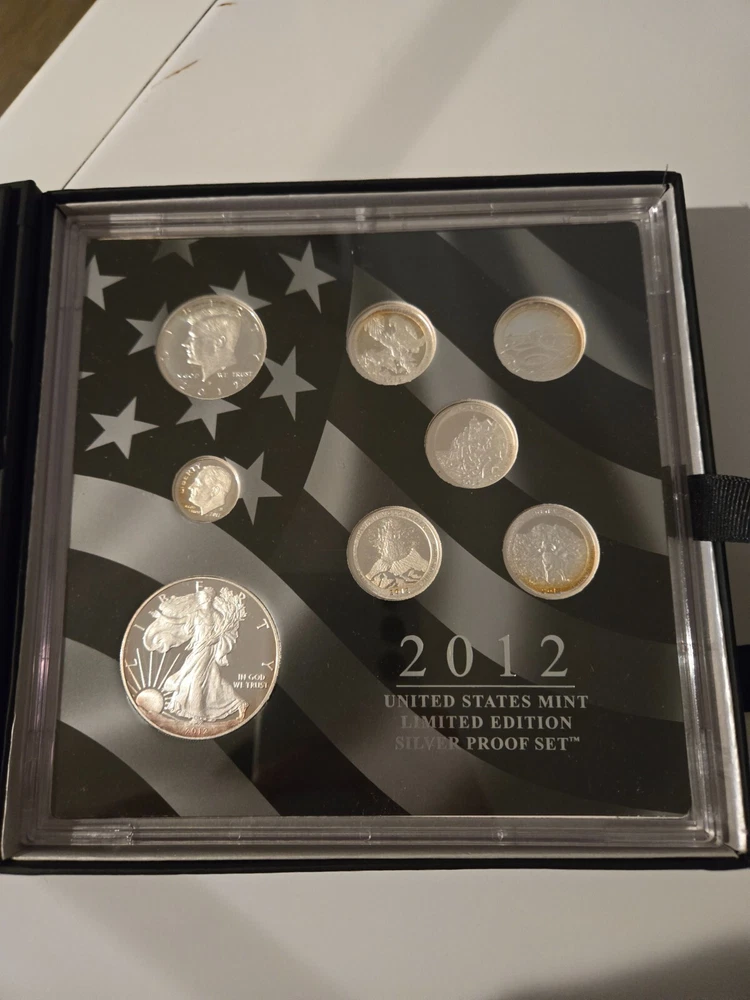 Grade:UngradedCirculated/Uncirculated:UncirculatedStrike Type:ProofComposition:SilverMint Location:West Point & San FranciscoCountry/Region of Manufacture:United StatesCertification:U.S. MintDenomination:10c 25c 50c $1Year:2012Fineness:0.999